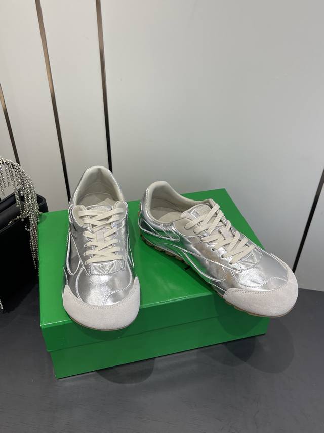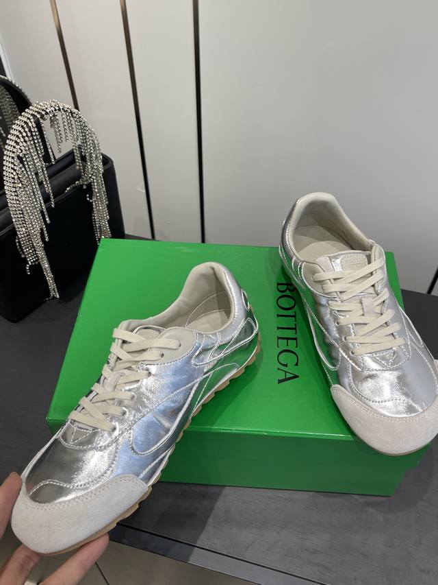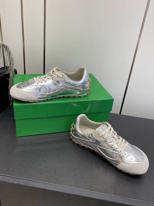 Bottega Veneta Bv Orbit Flash Retro Casual Shoes, Forrest Gump Sneakers, German Training Sneakers DDD Sneakers. Crafted from technical nylon and suede, inspired by retro sneakers, these classic athletic shoes offer a fresh interpretation. Lightweight, comfortable, and breathable, these are summer essentials. DDD The sole features a classic woven texture for high recognizability. The nylon and suede upper provides a premium feel. DDD Sizes: 35-40, 40 custom-made. DDD