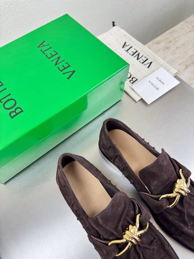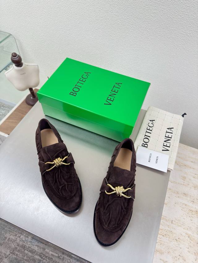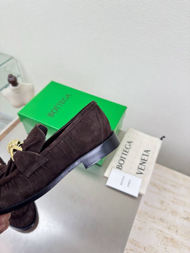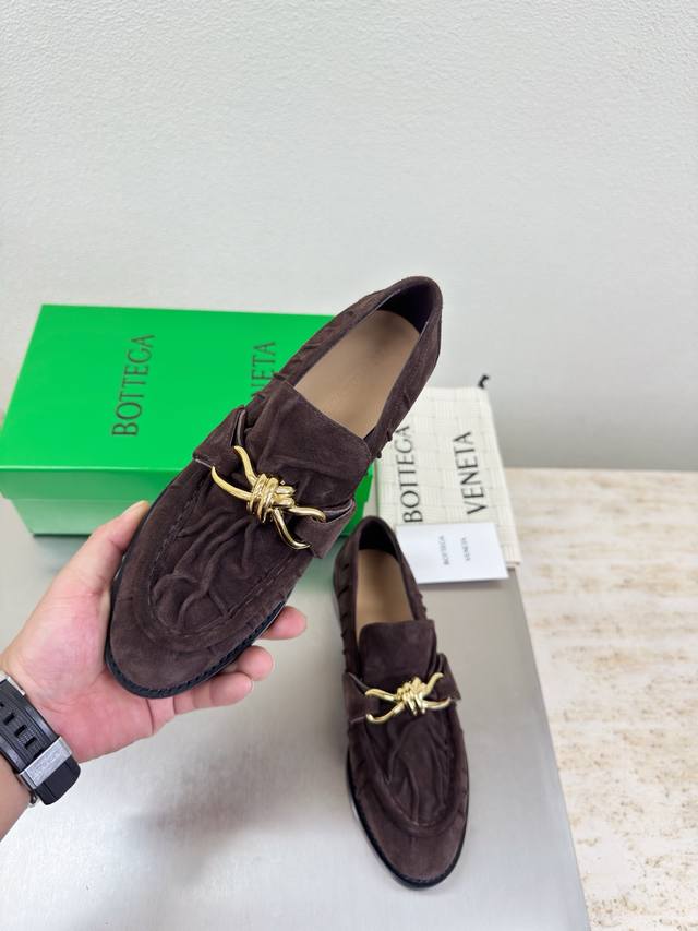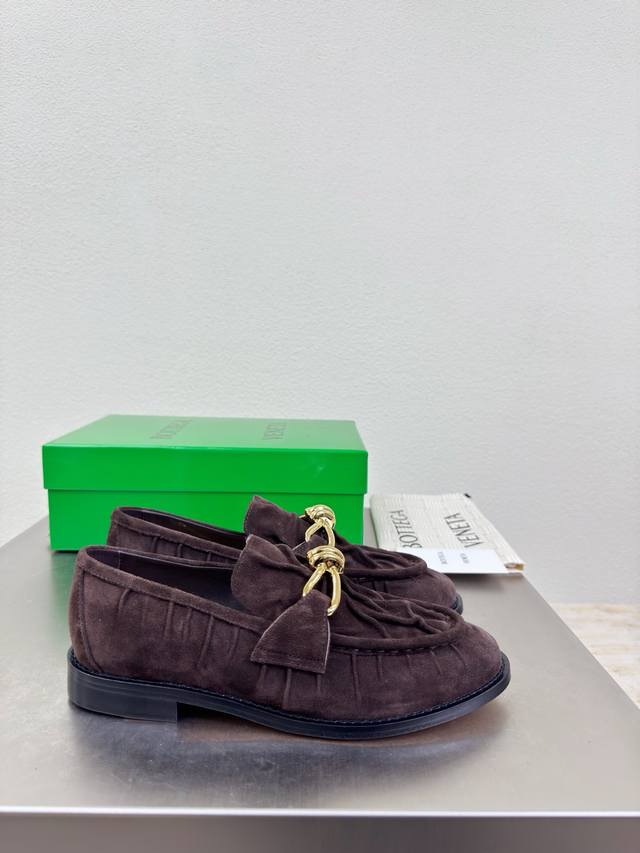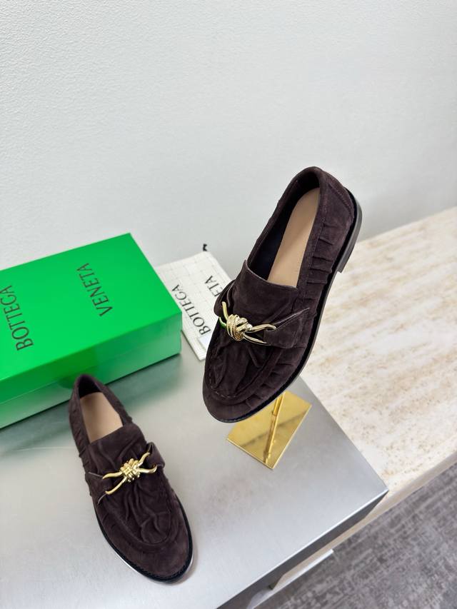 Factory direct price, top-tier high-end version, original development, Bottega Veneta 2025 SS new hot-selling summer Astaire metal buckle women's loafers. BV's new metal buckle textured knotted high-demand women's single shoes, worn by numerous influencers and celebrities on Instagram and Xiaohongshu! Super sexy on the feet! Truly beautiful! There's every reason to create a fashion trend. The irresistible comfort, heavy yet not tiring, Italian imported original custom fabric compared to the highest version on the market. This genuine leather knotted upper has a super high-end feel! High-end, elegant, simple, fashionable, and very comfortable, especially the flat sole which won't tire your feet even after a day of walking. Practical and textured, especially suitable for working professionals. Original mold opening, custom color, shoe shape, and sole are exactly the same. It's worth mentioning that the sole was developed over a month with repeated testing, achieving near perfection; most on the market are spray-painted. The round-toe metal buckle and knot design elements are a hallmark of the Bv family design. The upper is made of top-grade Italian imported suede calfskin, paired with a sheepskin lining for comfort and warmth. The design is incredibly stylish, making it a must-have for any trendy individual. All development is based on the original specifications, deeply disassembling and replicating the metal buckle and knot craftsmanship. It's handmade, incurring significant costs. The outsole is made of genuine Italian leather using Italian techniques, offering slip resistance and comfort. Your long-awaited pair is finally here! Versatile and suitable for any occasion, a must-have for everyone! Material: Italian imported suede calfskin; Lining: Italian imported sheepskin; Insole: Italian imported sheepskin; Outsole: Italian imported genuine leather; Sizes: 35-39; 40, 41, 42, 43 are custom-made, no returns or exchanges. Customization: Can be customized without tags or customer logos, no returns or exchanges. Packaging: Top-grade, full original packaging.