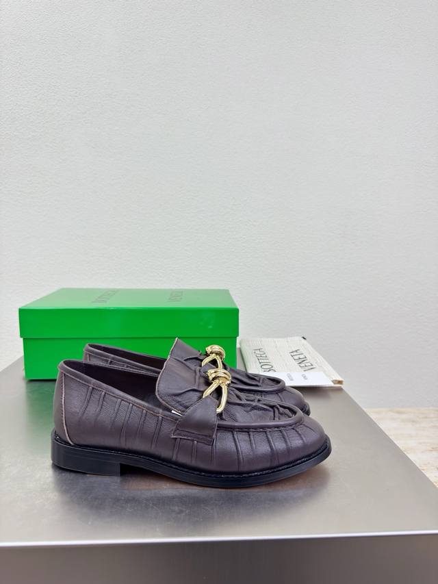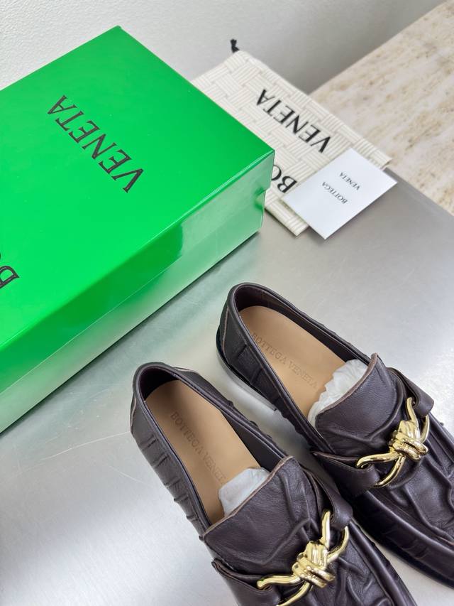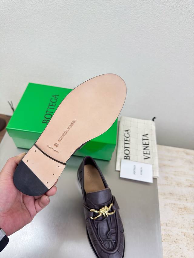 Factory direct price, top-tier high-end version, original development, Bottega Veneta 2025Ss new hot-selling summer Astaire metal buckle women's loafers. Bv's new metal buckle textured knotted high-demand women's single shoes, worn by numerous influencers and celebrities on Instagram and Xiaohongshu! Super sexy on the feet! Truly beautiful! There's every reason to create a fashion trend. The irresistible comfort, heavy yet not tiring, Italian imported original custom fabric compared to the highest version on the market. This genuine leather knotted upper has a super high-end feel! High-end, elegant, simple, fashionable, and very comfortable, especially the flat sole which won't tire your feet even after a day of walking. Practical and textured, especially suitable for working professionals. Original mold opening, custom color, shoe shape, and sole are exactly the same. It's worth mentioning that the sole was developed over a month with repeated testing, achieving near perfection; most on the market are spray-painted. The round-toe metal buckle and knot design elements are a hallmark of the Bv family design. The upper is made of top-grade Italian imported calfskin, paired with a sheepskin lining for comfort and warmth. The design is incredibly stylish, making it a must-have for any trendy individual. All development adheres to the original specifications, deeply disassembling and replicating the metal buckle and knot craftsmanship. It's handmade, incurring significant costs. The outsole features genuine Italian leather and Italian craftsmanship for slip resistance and comfort. Your long-awaited pair is finally here! Versatile and suitable for any occasion, a must-have for everyone! Material: Italian imported calfskin; Lining: Italian imported sheepskin; Insole: Italian imported sheepskin; Outsole: Italian imported genuine leather; Sizes: 35-39; 40, 41, 42, 43 are custom-made, no returns or exchanges. Customization: Can be made without tags or customer logos, no returns or exchanges. Packaging: Top-grade, full original packaging.