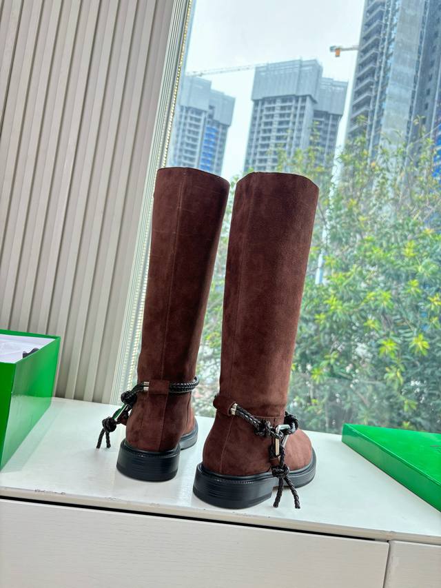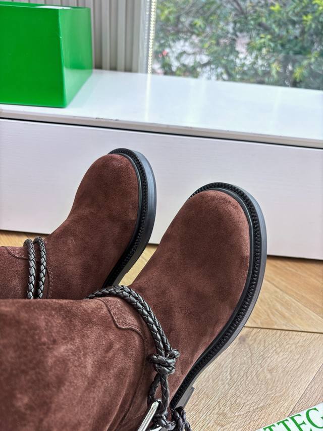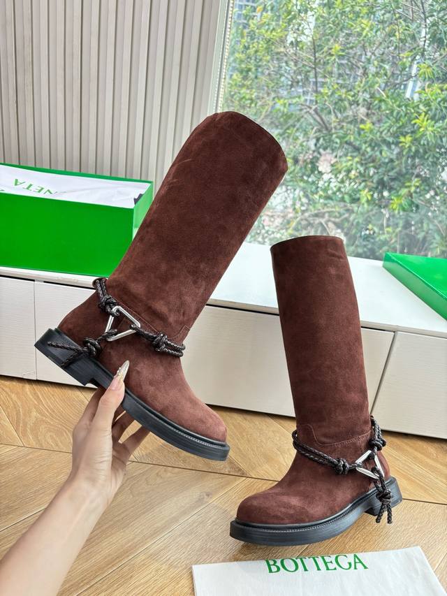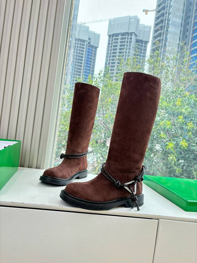 G261 What you see is what you get: Bottega Veneta Bv slip-on fashion ankle boots/riding boots DDD So cool, I fell in love at first sight! These rope-knot boots are a must-have DDD The classic rope knot weave wraps around the boot body, paired with the iconic triangular metal buckle. The black and silver contrast creates a cool and stylish filter. Wearing them instantly transforms you into a street style queen, exuding confidence DDD The boot shape makes your legs look super long. Whether you pair them with floor-length jeans for a casual and relaxed look, with a mini skirt for a sexy style, or even with suit pants for a professional and sophisticated look, they are a perfect match. They are the "universal key" for autumn and winter outfits. Sisters who are struggling with autumn and winter boots, go for it! DDD Upper: Calfskin lining Bv traditional apricot calfskin lining DDD Outsole: Rubber outsole DDD Colors: Black, Dark Brown DDD Size: 35-40 40 Custom sizes are non-refundable and non-exchangeable DDD