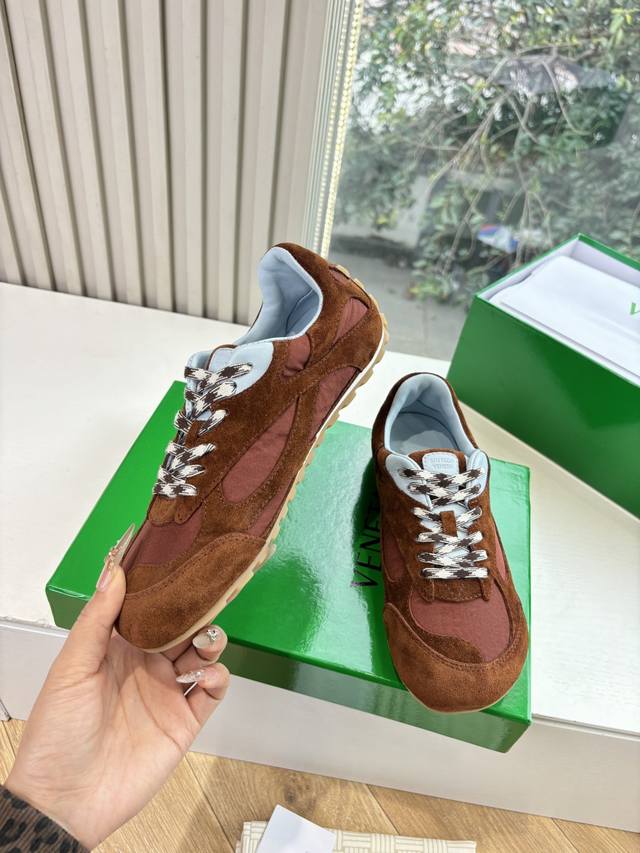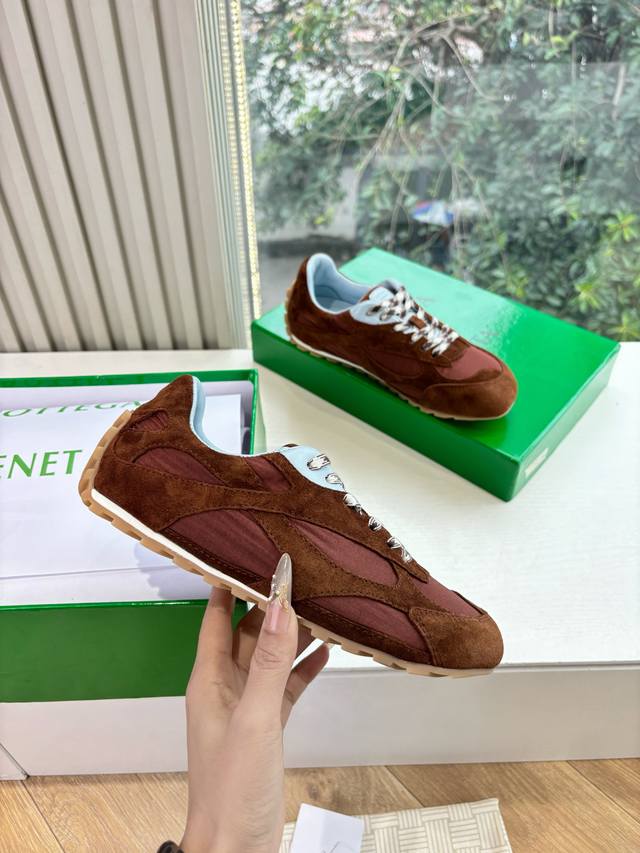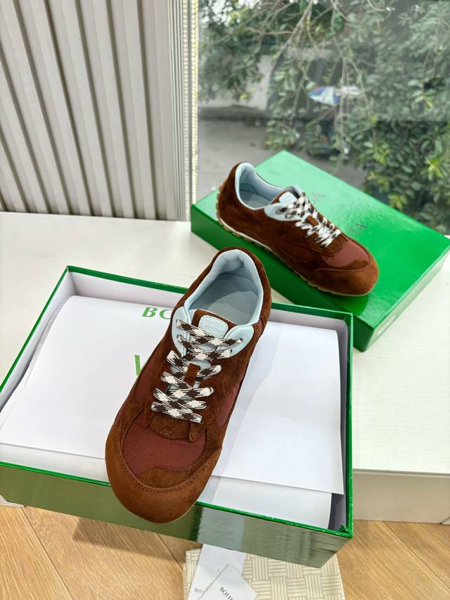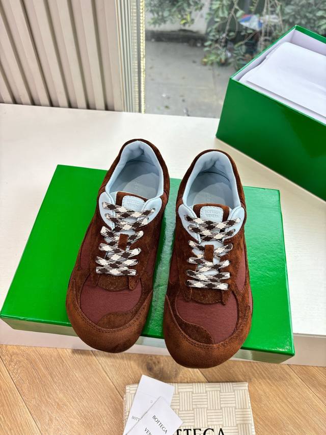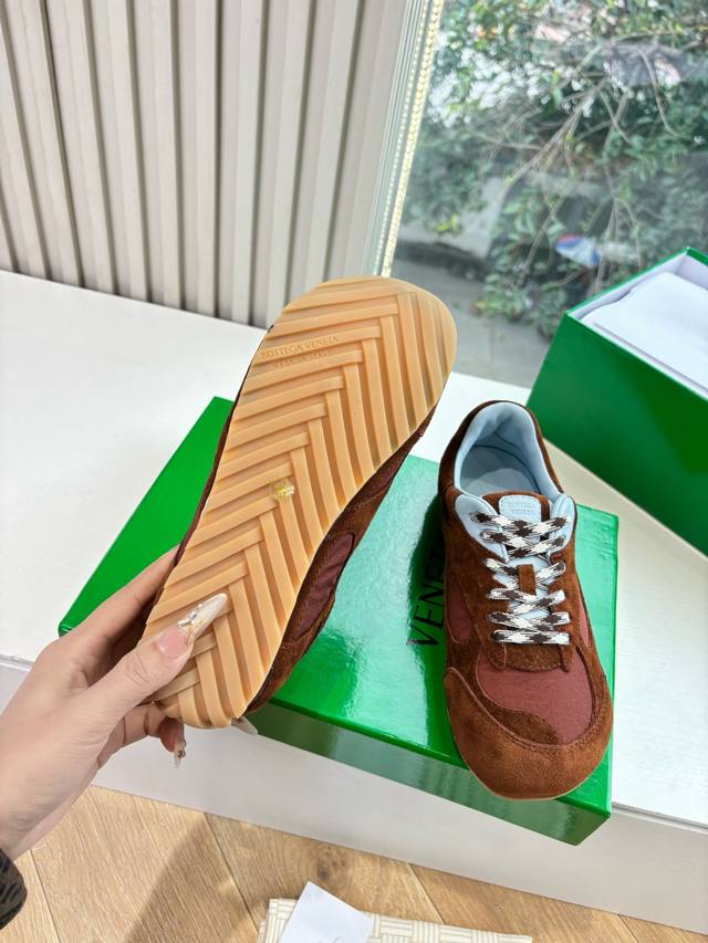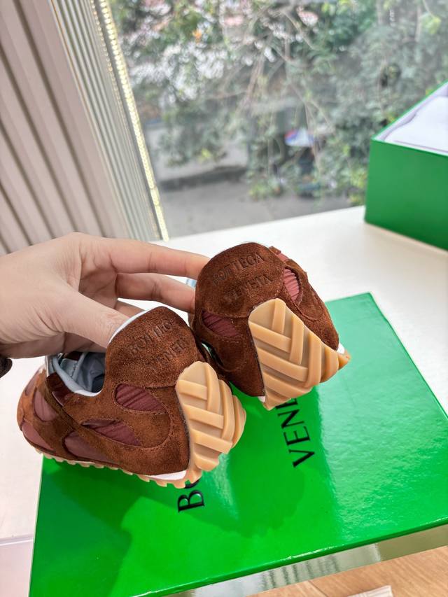 G261Bv Same style as Liu Wen, Bottega Veneta new sneakers and casual shoes. Inspired by the 90s retro style, the Bottega Veneta Orbit sneakers feature a mesh upper, echoing the brand's iconic Intrecciato woven element, showcasing a sophisticated and avant-garde design. Made with lightweight technical fabric, suede, and mesh, the low-top lace-up design offers casual comfort while maintaining a refined and stylish look. Material: Suede leather. Lining: Original lining. Sizes: 35-40. Size 40 is custom-made and non-refundable/non-exchangeable.