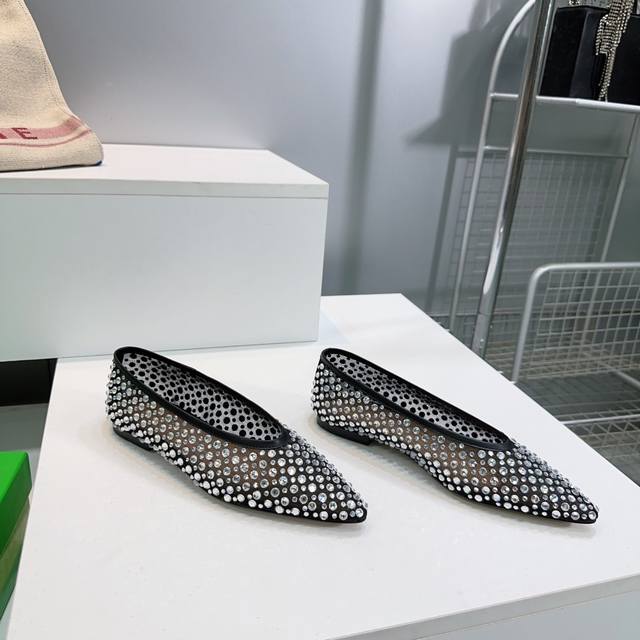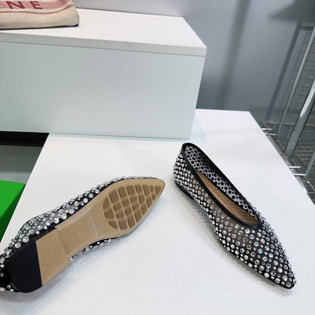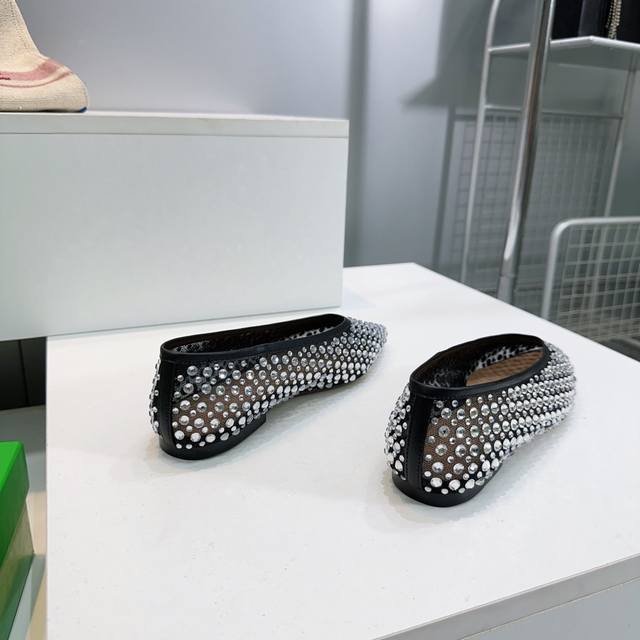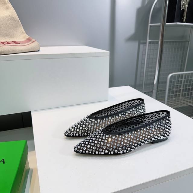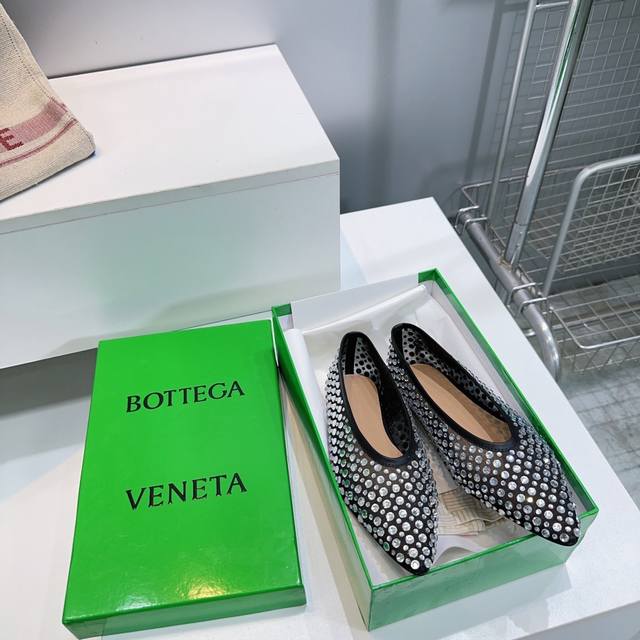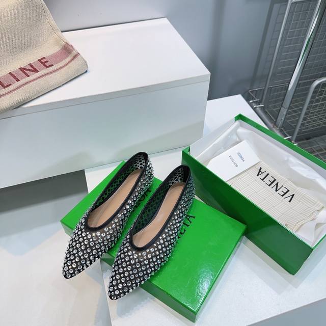 High-quality factory-made flat shoes! Top-quality Bottega Veneta Ss Fall/Winter new arrivals: mesh rhinestone flat and high-heeled shoes! Rhinestone pointed toe | Turning the galaxy into a sharp edge underfoot. Rhinestone fragments like a star shower, welded to the upper. The pointed toe cuts through the barrier of mediocrity. Bv's glamour is never a gentle knife; every step teaches you how to make starlight the footnote of your battle armor. Imported Austrian rhinestones on the upper. Imported sheepskin insole. Imported Italian injection-molded genuine leather outsole. Heel height: flat, 9cm. Sizes: 35-42. Orders of 40, 41, and 42 are non-refundable. Comes with original packaging.
