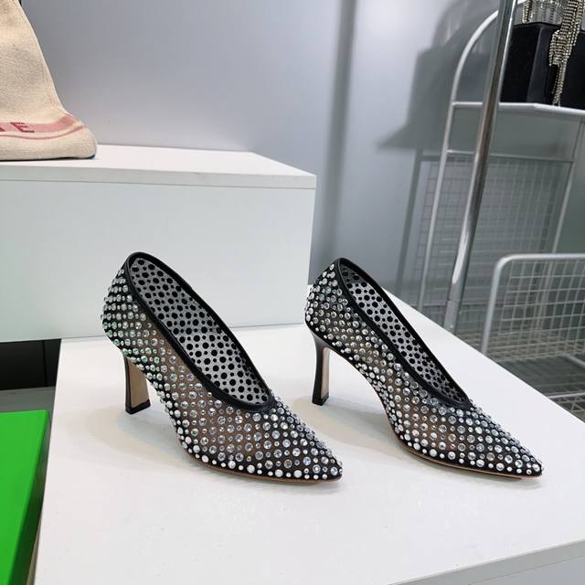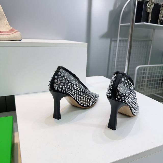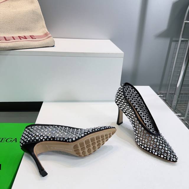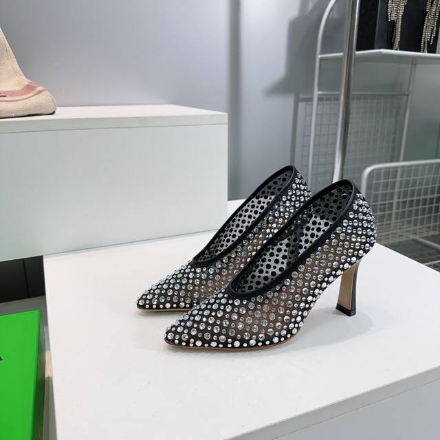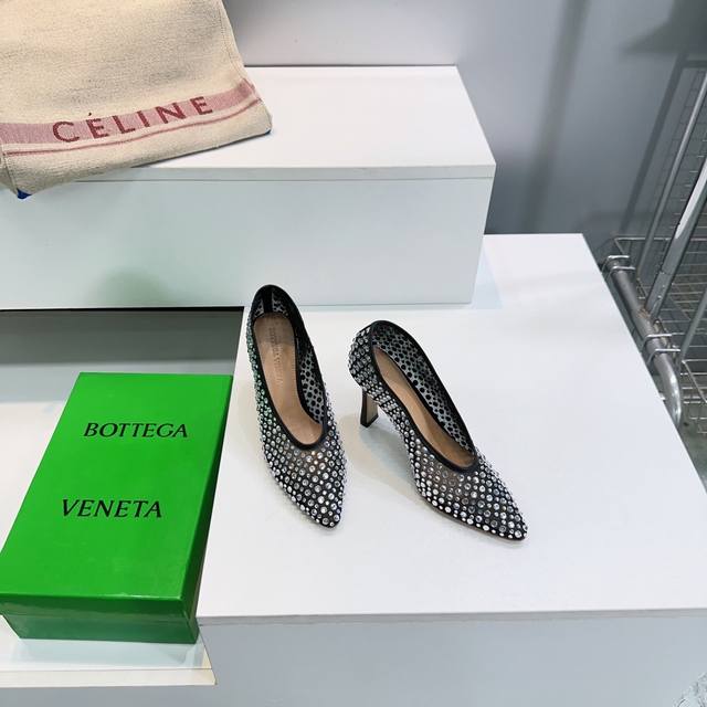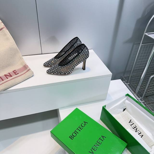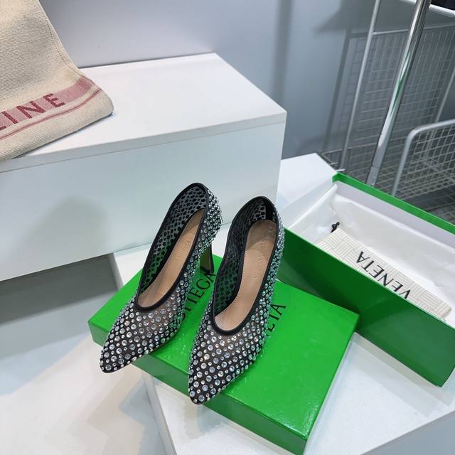 High-quality factory-made high heels! Top-quality Bottega Veneta Ss Fall/Winter new arrivals: mesh rhinestone flats and high heels! Rhinestone pointed toe | Turning the galaxy into a sharp edge underfoot. Rhinestone fragments like a star shower, welded to the upper. The pointed toe cuts through the barrier of mediocrity. Bv's glamour is never a gentle knife; every step teaches you how to make starlight the footnote of your battle armor. Imported Austrian rhinestones on the upper. Imported sheepskin insole. Imported Italian injection-molded genuine leather outsole. Heel height: flat, 9cm. Sizes: 35-42. Orders of 40, 41, and 42 are non-refundable. Comes with original packaging.