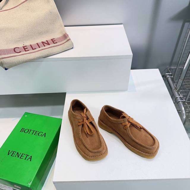 High-quality factory-made women's and men's Bottega Veneta Fall/Winter New Arrival! These chunky loafers feature a suede upper with a soft, relaxed feel. The simple lace-up design perfectly blends casualness and sophistication. Wearing them makes you a low-key yet eye-catching fashionista, giving you an artistic walk. They go with everything like you're on a runway. Fashionistas, buy them without hesitation! The upper is made of imported suede, the insole is made of water-dyed cowhide, and the outsole is made with original molds. Sizes: Women's 35-40 (40 is custom-made and non-refundable); Men's 39-45 (39 and 45 are custom-made and non-refundable). Comes with original packaging.