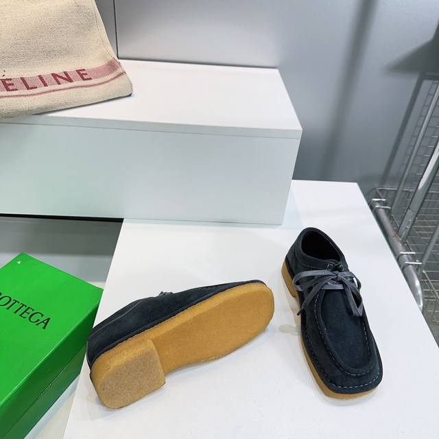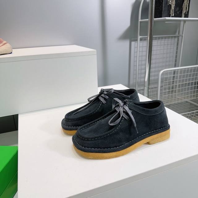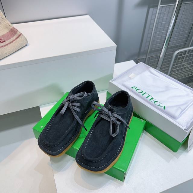 High-quality factory-made women's and men's Bottega Veneta Fall/Winter New Arrival! These chunky loafers feature a suede upper with a soft, relaxed feel. The simple lace-up design perfectly blends casualness and sophistication. Wearing them makes you a low-key yet eye-catching fashionista, giving you an artistic walk. They go with everything like you're on a runway. Fashionistas, buy them without hesitation! The upper is made of imported suede, the insole is made of water-dyed cowhide, and the outsole is made with original molds. Sizes: Women's 35-40 (40 is custom-made and non-refundable); Men's 39-45 (39 and 45 are custom-made and non-refundable). Comes with original packaging.