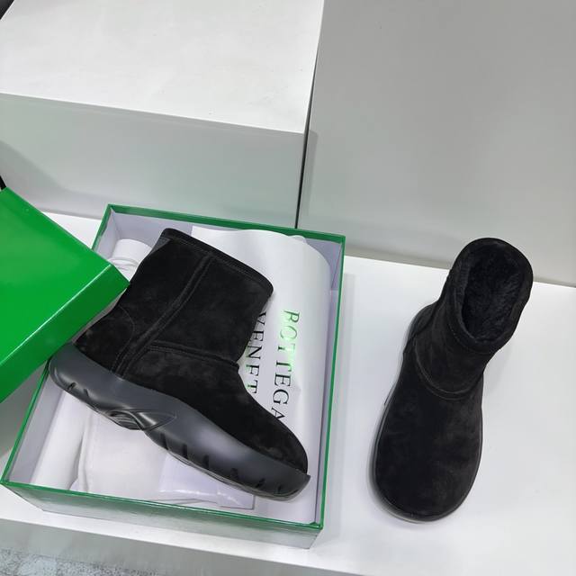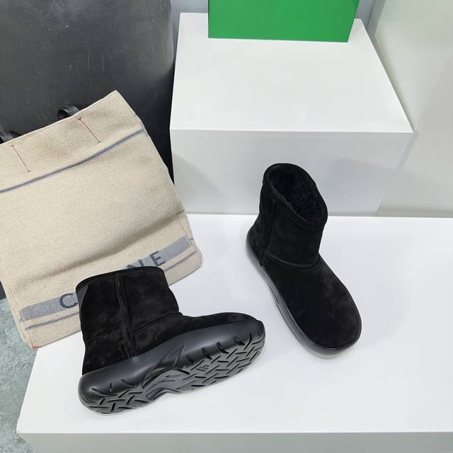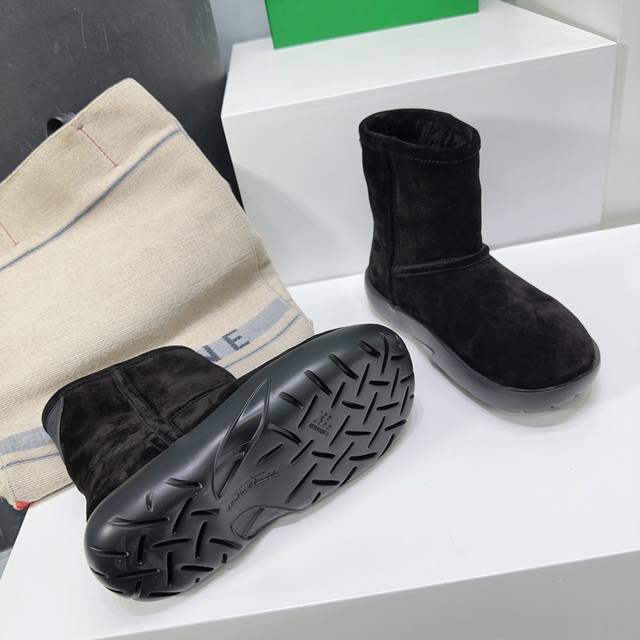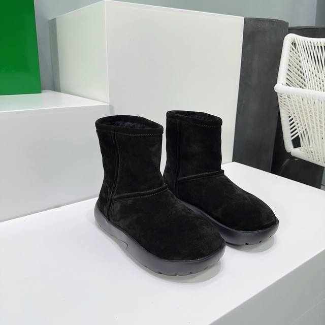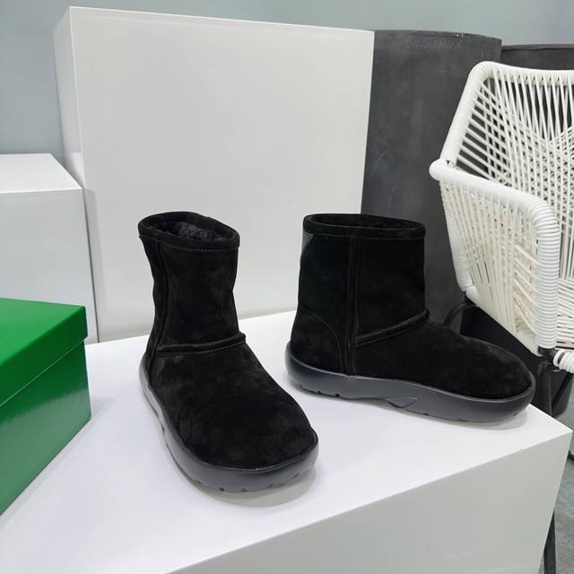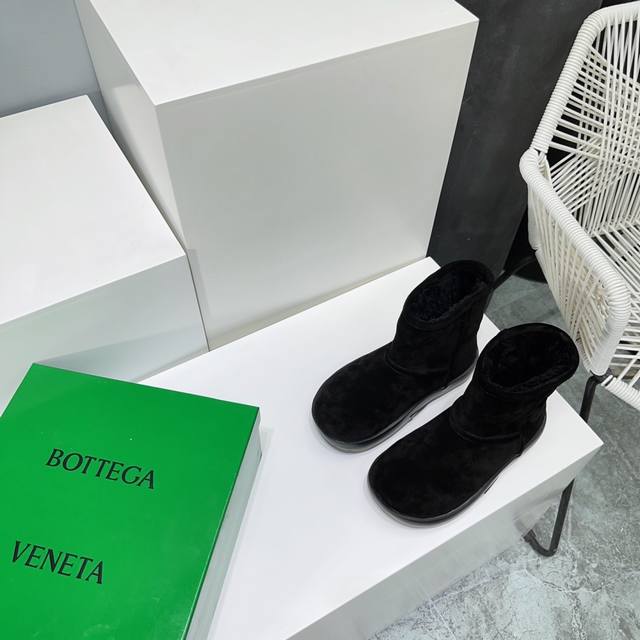 High-quality factory-made women's and men's snow boots! Top quality! Bottega Veneta 25Ss Autumn/Winter new round-toe simple snow boots, furry short boots!