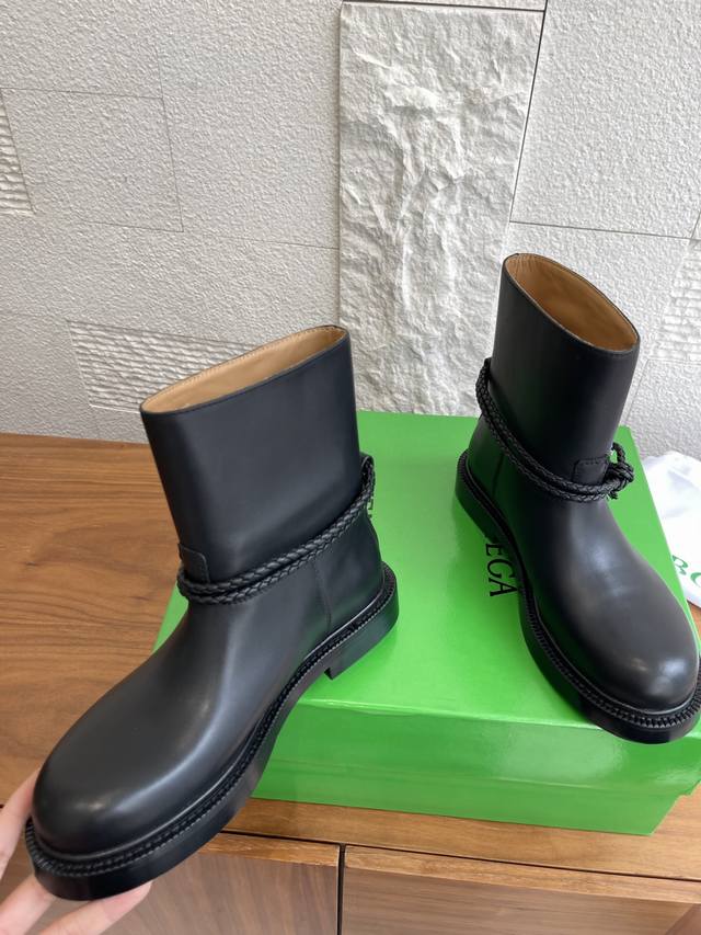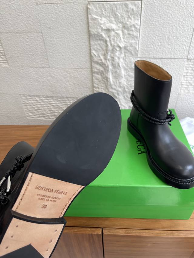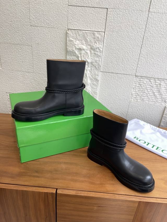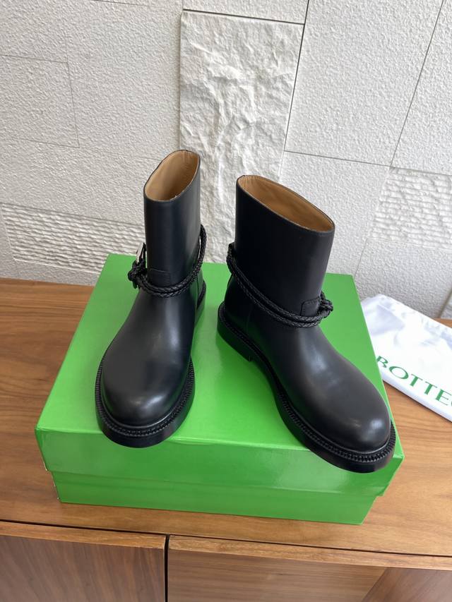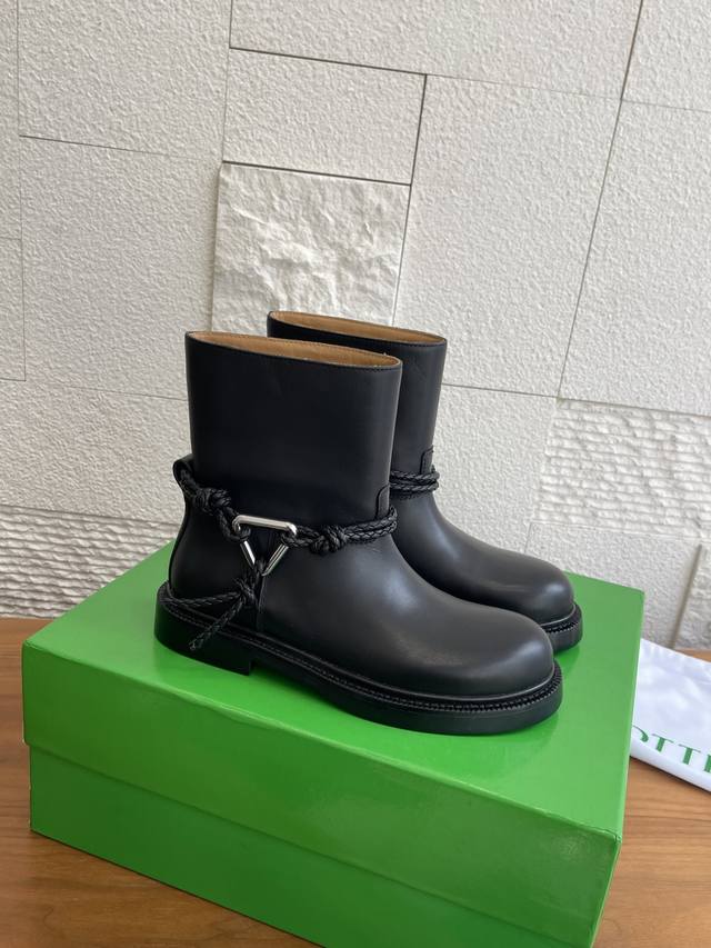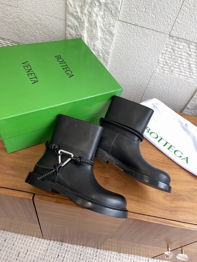 Bottega Veneta 25Ss Autumn/Winter New Round Toe Rope Knot Triangle Buckle Ankle Boots