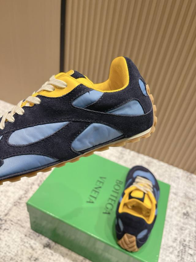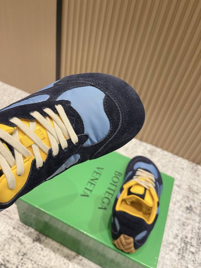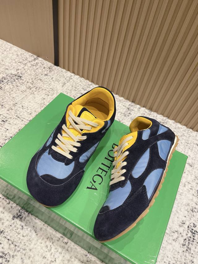 Original purchase and development. Bottega Veneta, inspired by the free and easy retro style of the 90s, launched the new unisex sneaker Orbit series. While ensuring casual comfort, it does not lack the exquisite design. It brings a new interpretation with its exquisite and avant-garde design. It pays tribute to individual style and creates a timeless style by colliding function and silhouette. "Dynamic" is one of the key design concepts of the Matthieu Blazy. While offering comfortable wear, it also elegantly flatters the foot line and can be freely paired with trousers or skirts, easily handling various everyday styles. Material: High-gloss cow suede with technical mesh fabric; Lining: Imported soft sheepskin lining; Outsole: Original molded anti-slip TPU material; Sole thickness: 2cm; Size: 35-45 (Women's 40.41, Men's 45, Custom made).