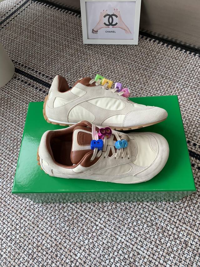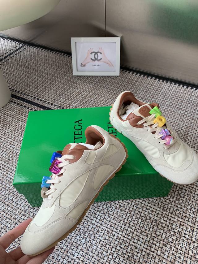 Women's and Men's Decorative Buckle Bottega Veneta's latest Orbit series retro casual sneakers, couple style. Inspired by the free and easy retro style of the 90s, Bottega Veneta has launched the new unisex sneaker Orbit series. While ensuring casual comfort, it also features meticulously crafted designs. The use of premium space fabric echoes the brand's iconic Intreccio element, achieving a lightweight feel. The sophisticated and avant-garde design brings a fresh interpretation, paying tribute to individual style and creating a timeless look through the collision of function and silhouette. "Dynamic" is one of the key design concepts of the Matthieu Blazy. While comfortable to wear, it also elegantly flatters the foot line and can be easily paired with trousers or skirts, effortlessly handling various everyday styles. Original custom-made cow suede upper, imported sheepskin lining, original molded anti-slip TPU sole, 2cm sole thickness, 3cm inner heel lift. Sizes: Women's 35-40, Men's 39-45. Women's 40... Custom-made