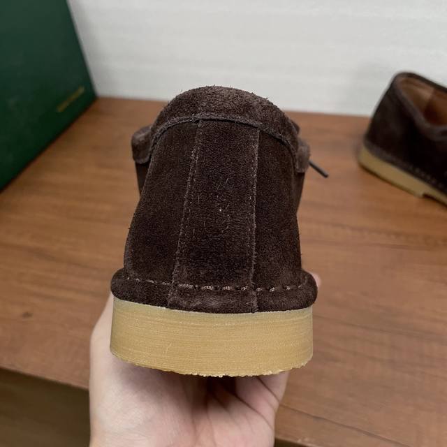 Bottega Veneta Men's Daddy Lace-up Shoes. These lace-up shoes are crafted from soft cow suede leather, offering a supple touch, fine texture, and excellent breathability. The classic low-top lace-up design and square toe give them a retro yet stylish look. The natural crepe sole is soft and slip-resistant, and the full-grain leather lining ensures comfortable walking. Perfect for autumn and winter, suitable for both work and casual wear! Comes with full original packaging! Sizes: 39-40-41-42-43-44 (Standard dress shoe size 38, 45). Custom orders are non-refundable. Item No.: V25-15 Leather Lined Brown.