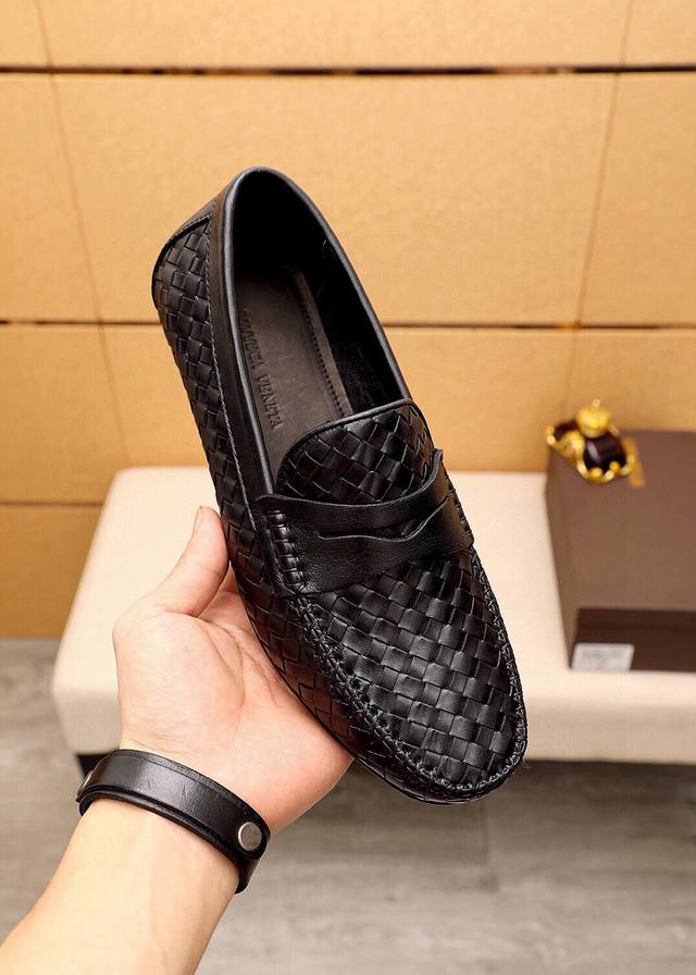 Bv Men's Slip-on Shoes, Bottega Veneta, New Style, 1:1 Replica, Made with Italian Calfskin, Hand-woven Leather Lining. Driving Slip-on Shoes, Same Sizes as Retail, 38-44, 45. Custom Made.