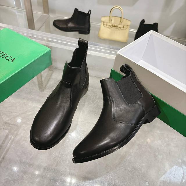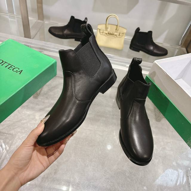 Bv Top-tier couple style. Sizes: Women's 35-39, Men's 39-44, Women's 40, Men's 38, 45, 46, 47. Custom orders are non-refundable and non-exchangeable. Note] Sizes 46 and 47 require additional payment. Bottega Veneta 2025 Autumn/Winter boutique style, round toe ankle boots with high-gloss calfskin upper, color-fixed calfskin lining, genuine leather outsole, 1:1 replica of the original design, exquisite workmanship, quality guaranteed!