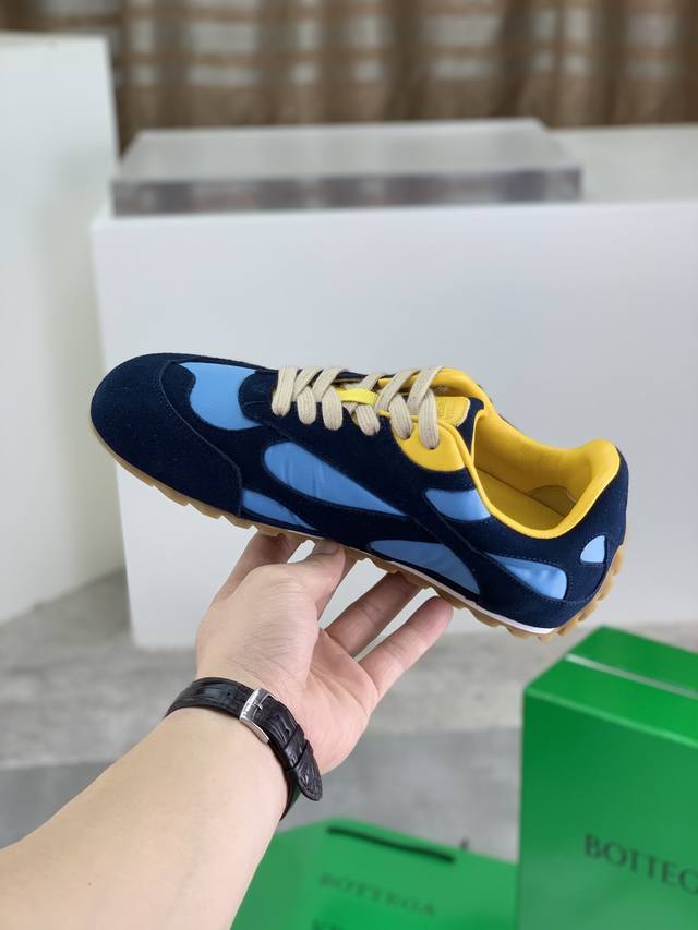 Factory direct price for men's sports shoes, original Bottega Veneta Orbit sneakers, couple style. Inspired by the silhouette of 90s sneakers, this shoe features a mesh texture and a cross-over upper made of different materials, undoubtedly paying homage to the brand's famous Intrecciato pattern. Furthermore, the sole design is slim and elegant, extending to the back of the heel, cleverly combining sporty elements and fashion inspiration. Made with lightweight technical metal leather and mesh fabric. Women's sizes 35-40, size 40 custom-made, men's sizes coming later. Comes with original packaging.