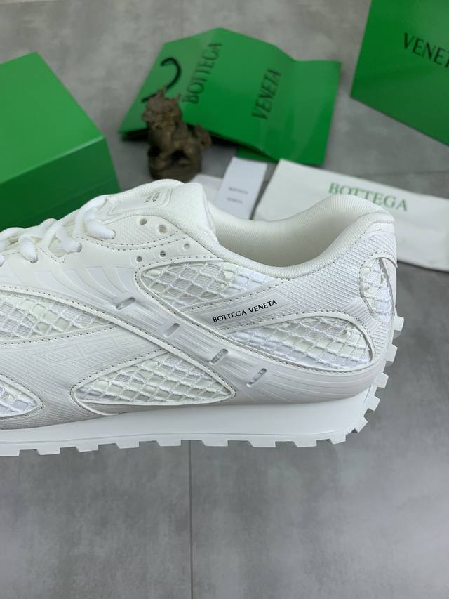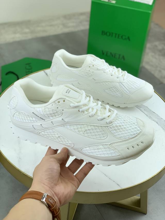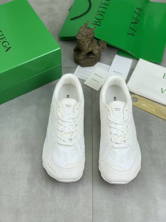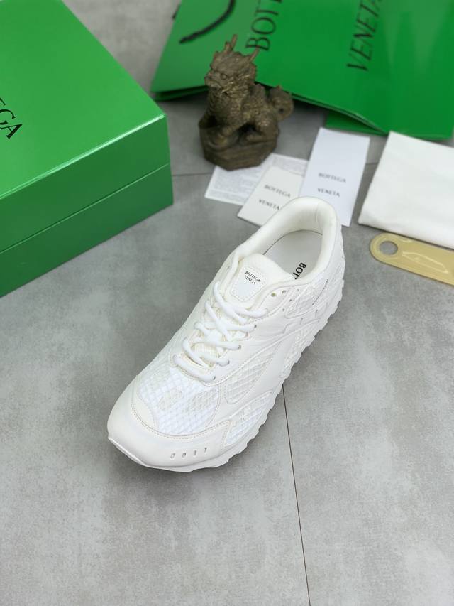 Factory direct price for women's sports shoes, original Bottega Veneta Orbit sneakers, couple style. Inspired by the silhouette of 90s sneakers, this shoe features a mesh texture and a cross-over upper made of different materials, undoubtedly paying homage to the brand's famous Intrecciato pattern. The sole is also slender and elegant, extending to the heel, cleverly combining athletic elements and fashion inspiration. Made with lightweight technical metal leather and mesh fabric. Women's sizes 35-40 (40 custom-made). Men's sizes 39-45 (45 custom-made). Comes with original packaging.