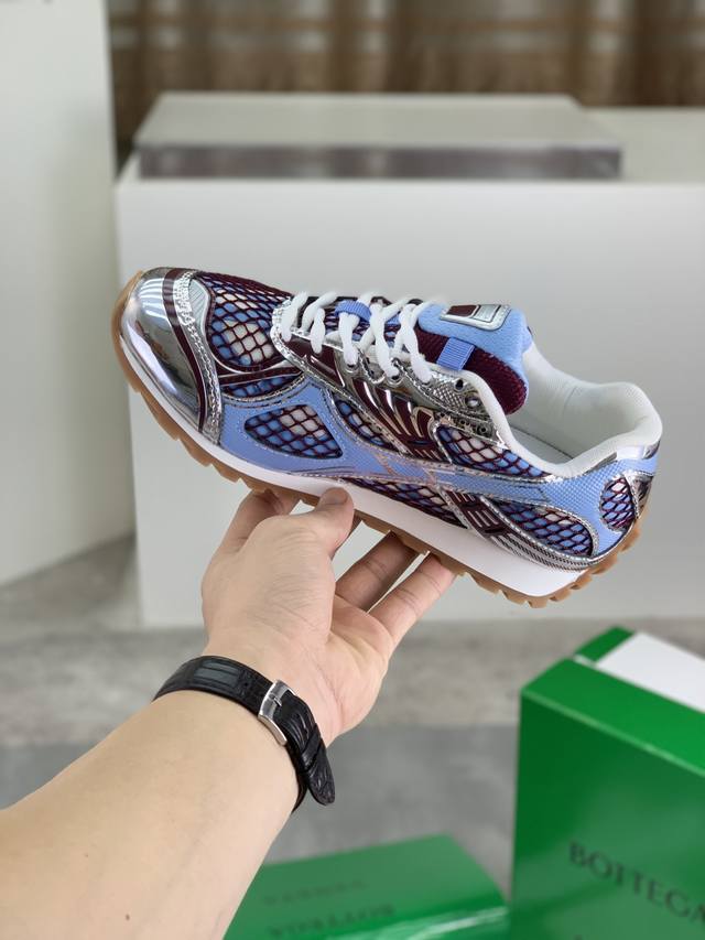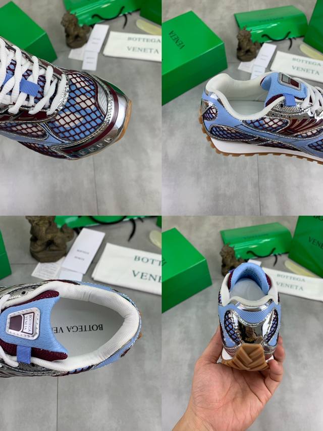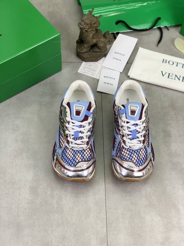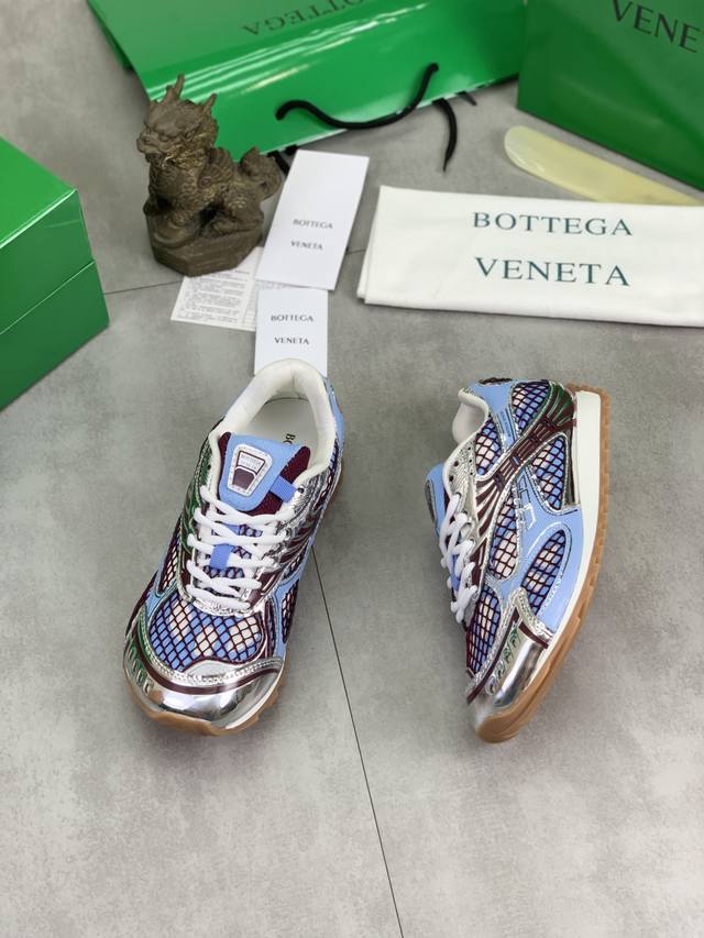 Factory direct price Men's shoes and athletic shoes, original Bottega Veneta Orbit sneakers, new colorway, couple style. This shoe is inspired by the silhouette of 90s sneakers, featuring a mesh texture and cross-over materials on the upper, undoubtedly paying homage to the brand's famous Intrecciato pattern. The sole is also slender and elegant, extending to the heel, cleverly combining athletic elements and fashion inspiration. Made with lightweight technical metal leather and mesh fabric. Women's sizes 35-40 (40 custom-made). Men's sizes 39-45 (45, 46, 47 custom-made). Comes with original packaging .