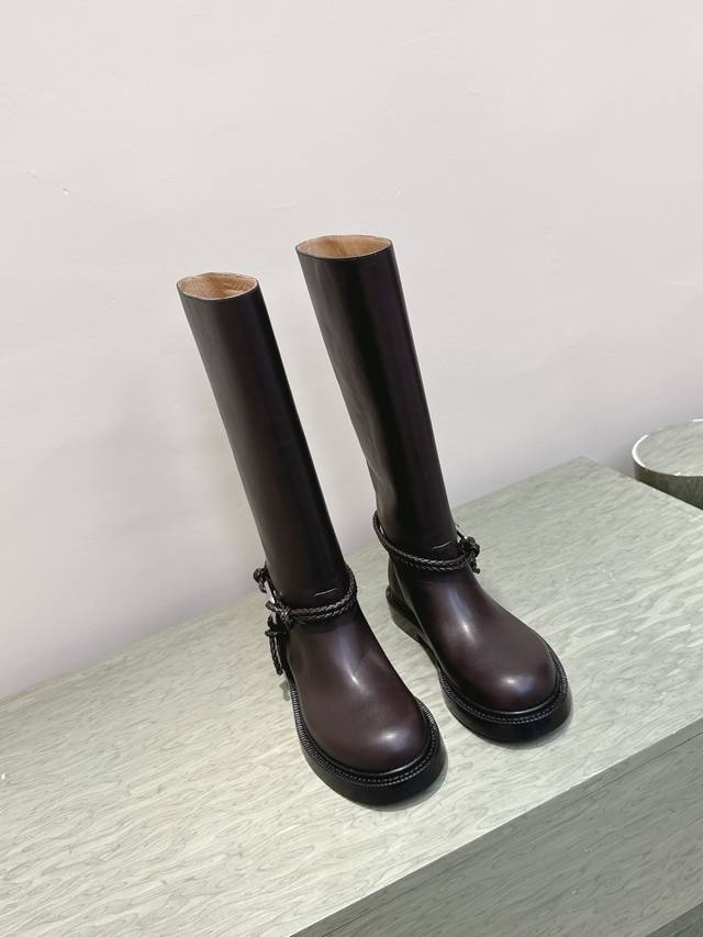High-quality reseller | 0672 Bottega Veneta slip-on trendy riding boots, high-top boots. Girls, look here! These rope-knot boots are a must-have!