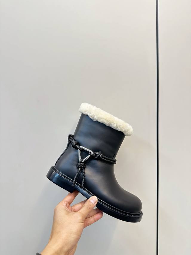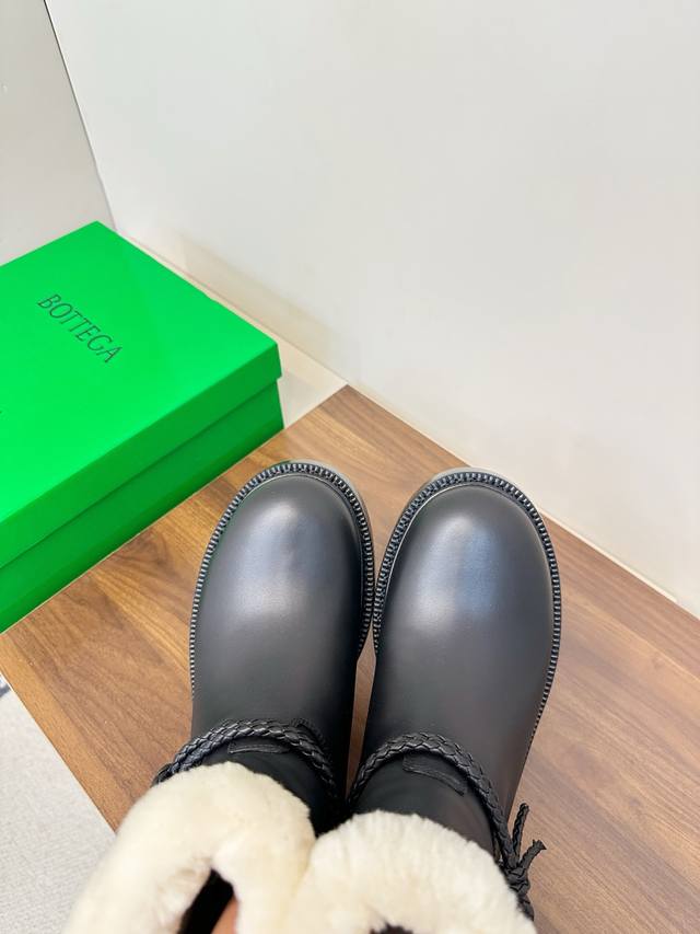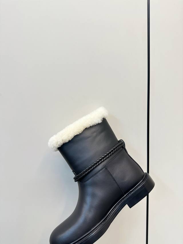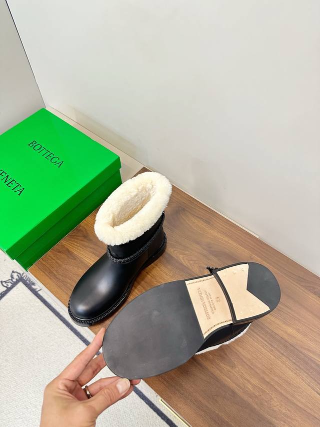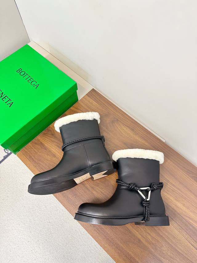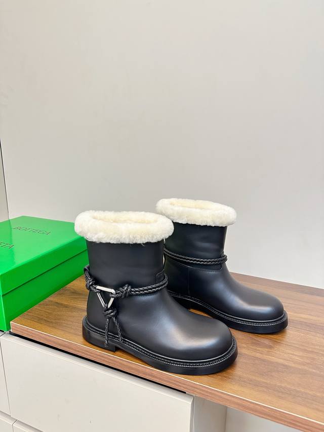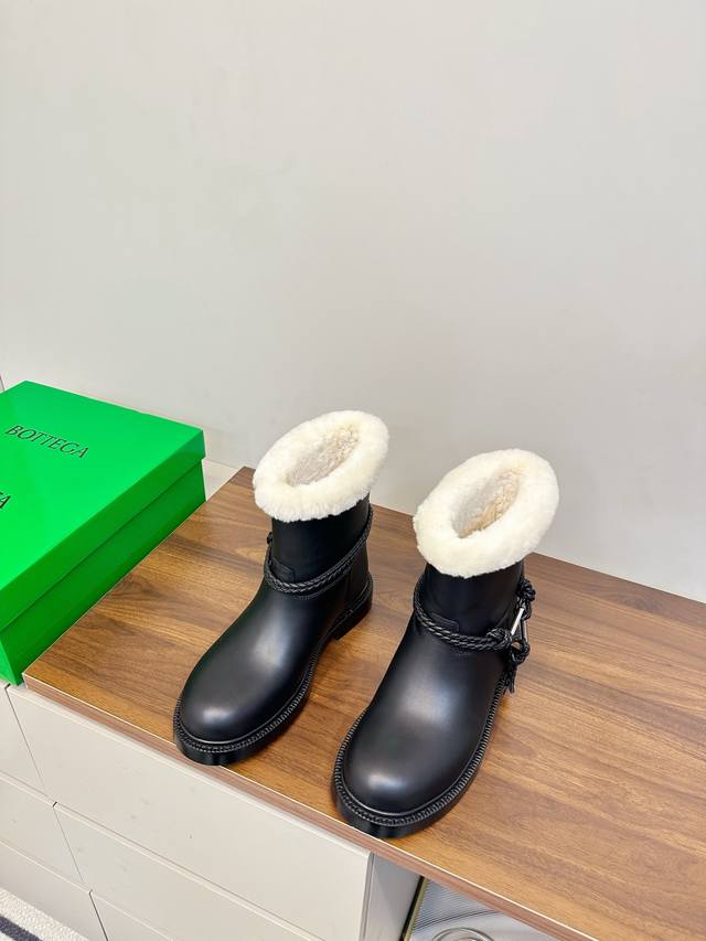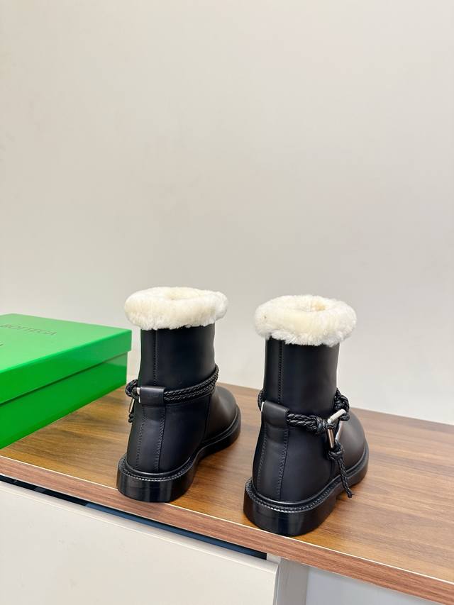 Bottega Veneta James Shearling Ankle Boots DDD These Bv James ankle boots are made of super soft waxed calfskin and shearling, perfect for staying warm in autumn and winter! Ddd The woven rope upper and triangular metal buckle make them instantly recognizable. Ddd The Italian genuine leather sole and anti-slip rubber in the forefoot ensure a stable walk. The boot shape elongates the legs and pairs well with jeans, skirts, and dress pants