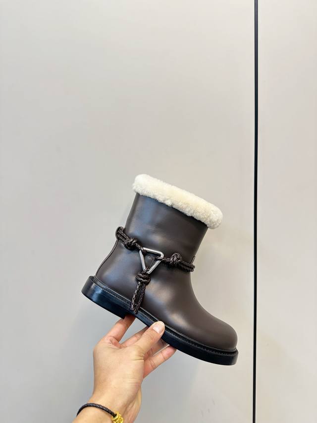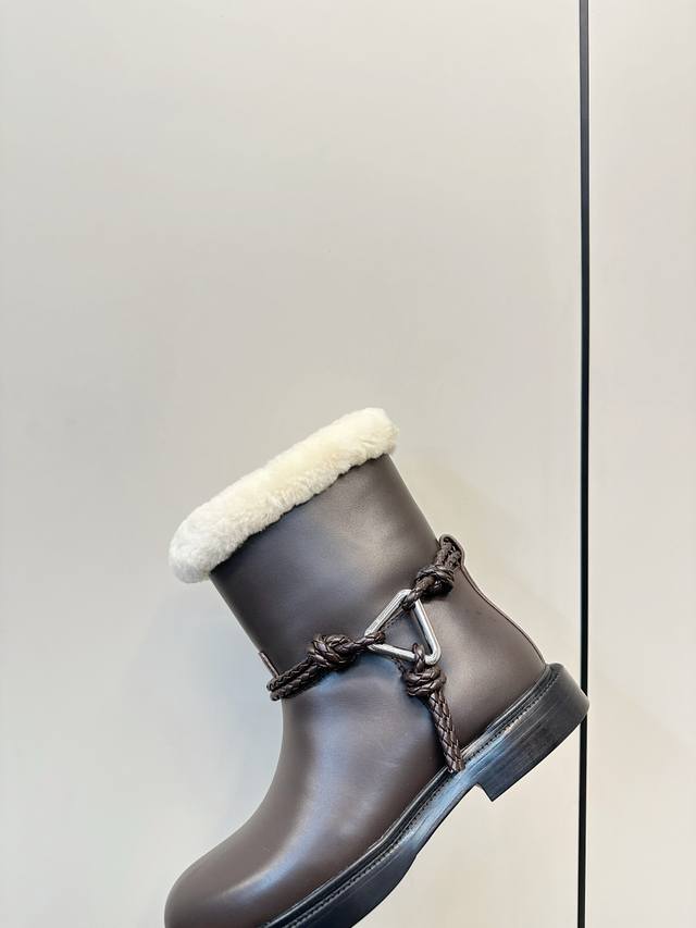 Bottega Veneta James Shearling Ankle Boots DDD These Bv James ankle boots are made of super soft waxed calfskin and shearling, perfect for staying warm in autumn and winter! Ddd The woven rope upper and triangular metal buckle make them instantly recognizable. Ddd The Italian genuine leather sole and anti-slip rubber in the forefoot ensure a stable walk. The boot shape elongates the legs and pairs well with jeans, skirts, and dress pants