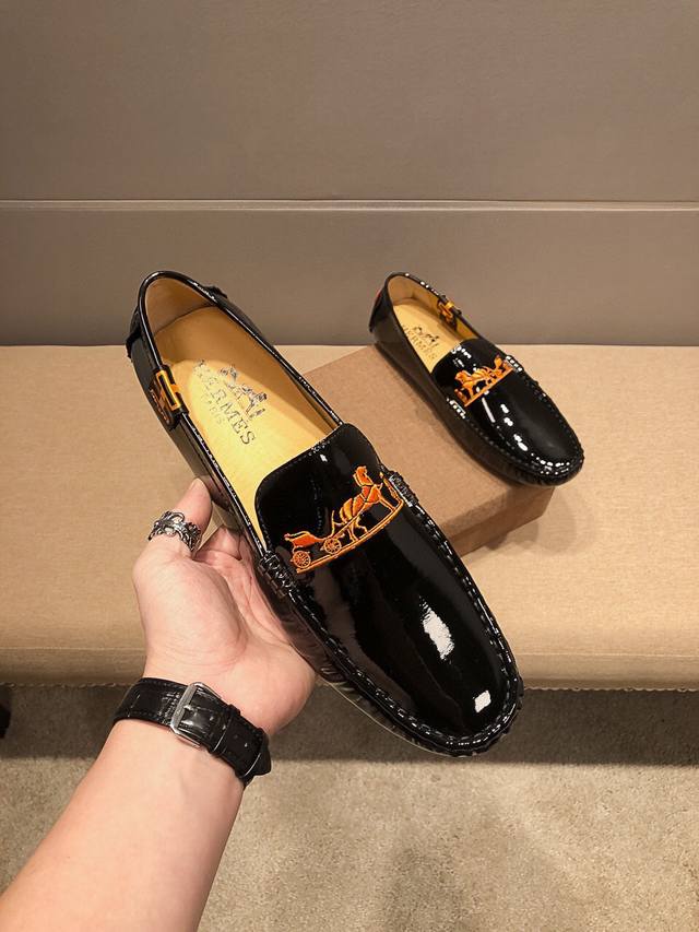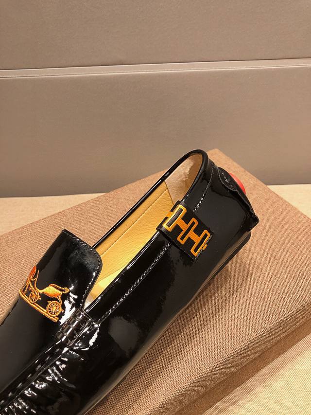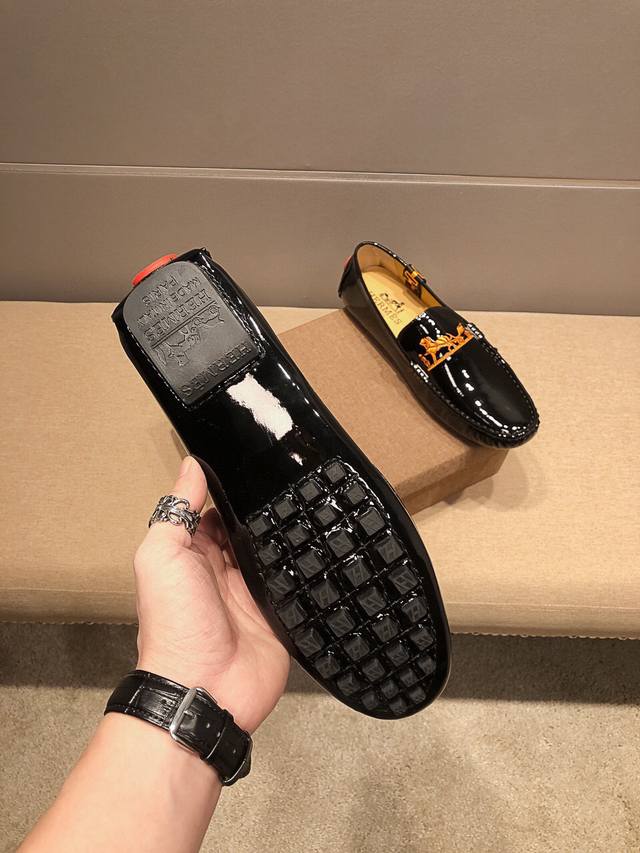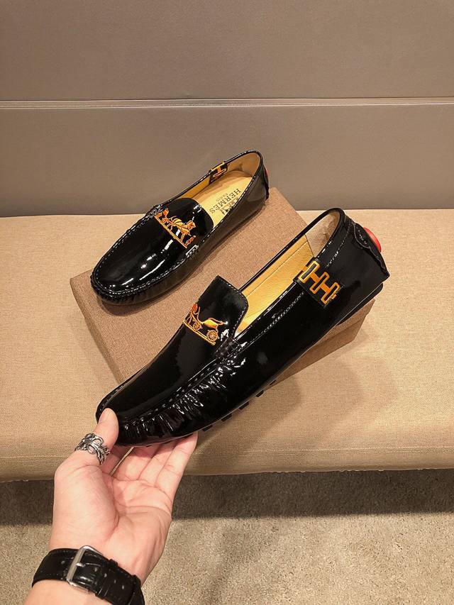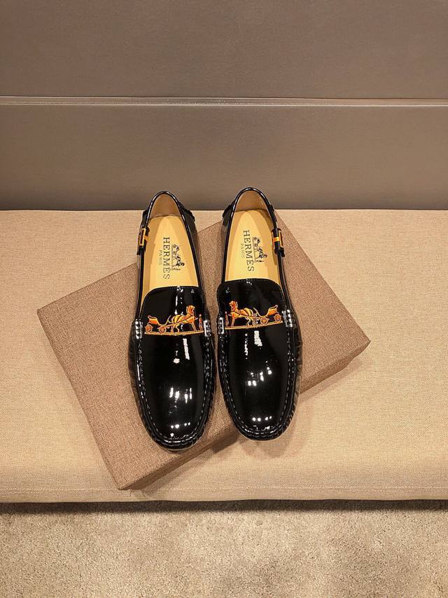 Brand Hermes, new official website release + best-selling item. The upper is made of top-grain original cow patent leather with embroidery, comfortable and breathable with genuine cowhide lining. A World Cup commemorative edition, sold simultaneously at the official Hermes store at 5 Canton Road, Tsim Sha Tsui, Hong Kong. Retail price: HKD 25,870. Grand and elegant, exuding French prestige. A runway piece from Paris Fashion Week. A brand can deeply resonate with you; a pair of shoes can make you linger. It's not just about prestige, but also about an aura. Standard sizes: 37-47.