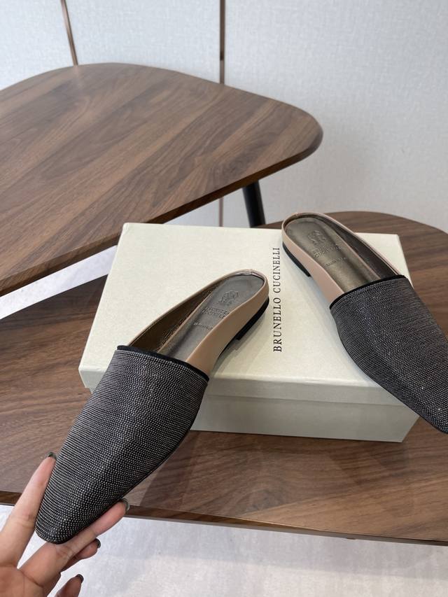 Brunellocucinellibc 26Ss Spring/Summer Flat Square-Toe Slippers DDD Square-toe shoes have always been very feminine, elegant, and sophisticated, possessing a certain charm that many loafers cannot match. DDD However, if pointed-toe high heels become tiring after wearing them for a long time, then a pair of comfortable and stylish square-toe flats becomes a necessity. Imported cowhide leather with a delicate feel is very important. DDD This goes without saying; women understand the importance of a good pair of shoes. Avoiding various frictions and blisters, a delicate texture is a must. DDD Material: Imported cowhide chain upper; insole: sheepskin; outsole: Italian imported genuine leather. DDD Size: #35-41; 40 and 41 are custom-made and non-refundable. DDD