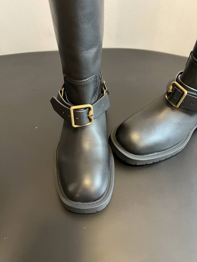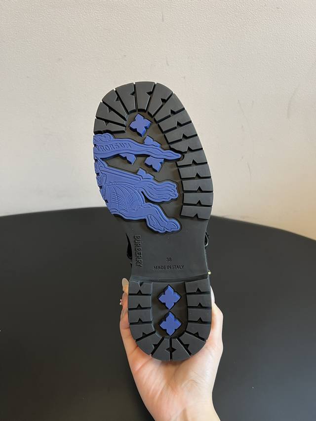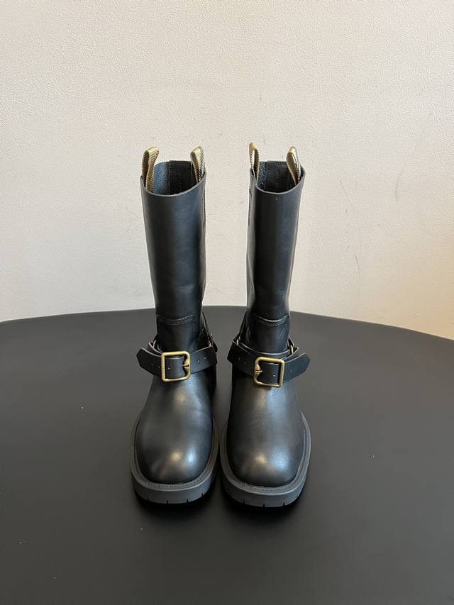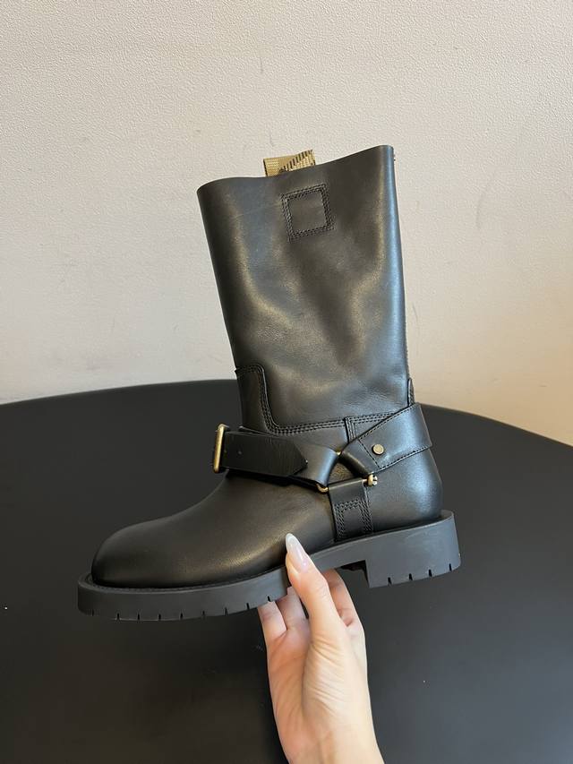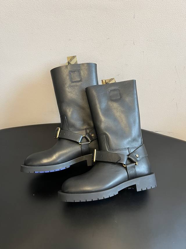 Burberry 25Ss Retro Thick-Soled British Style Mid-Calf Boots DDD Made in Italy with both calfskin and suede, these boots boast a delicate and luxurious feel. The boot opening features a classic Burberry check pull tab, a highly recognizable element of the brand. DDD Square stitching adorns the sides, complemented by a metal buckle strap engraved with the brand logo, echoing equestrian inspiration. The mid-calf boot shape and slightly wide opening accommodate various leg shapes. The thick rubber sole provides height, slip resistance, and durability, balancing comfort and style. DDD Material: Cowhide DDD Lining: Cowhide DDD Outsole: Rubber DDD Height Increase: 3.5cm DDD Size: 35-40, Size 40 (custom sizes, no returns or exchanges) DDD
