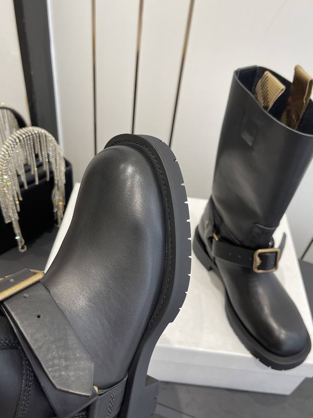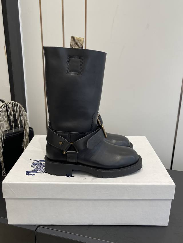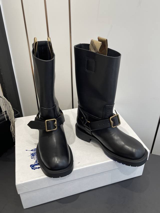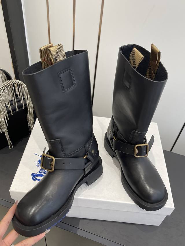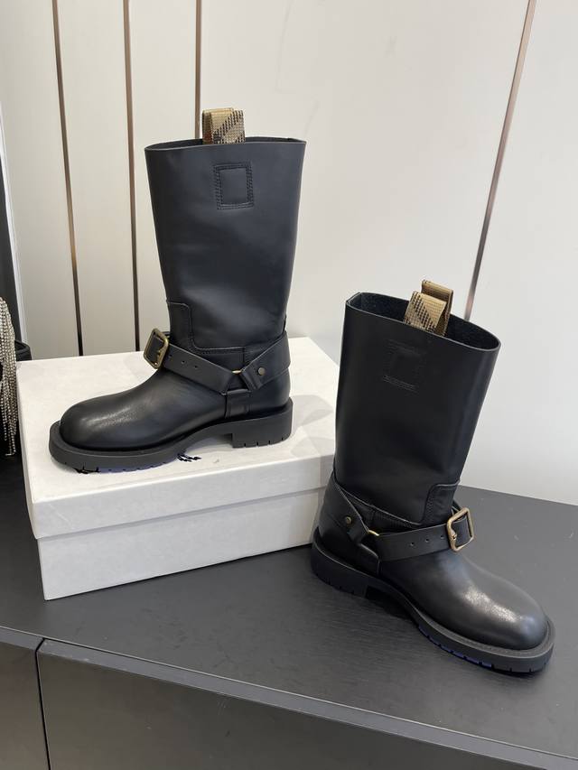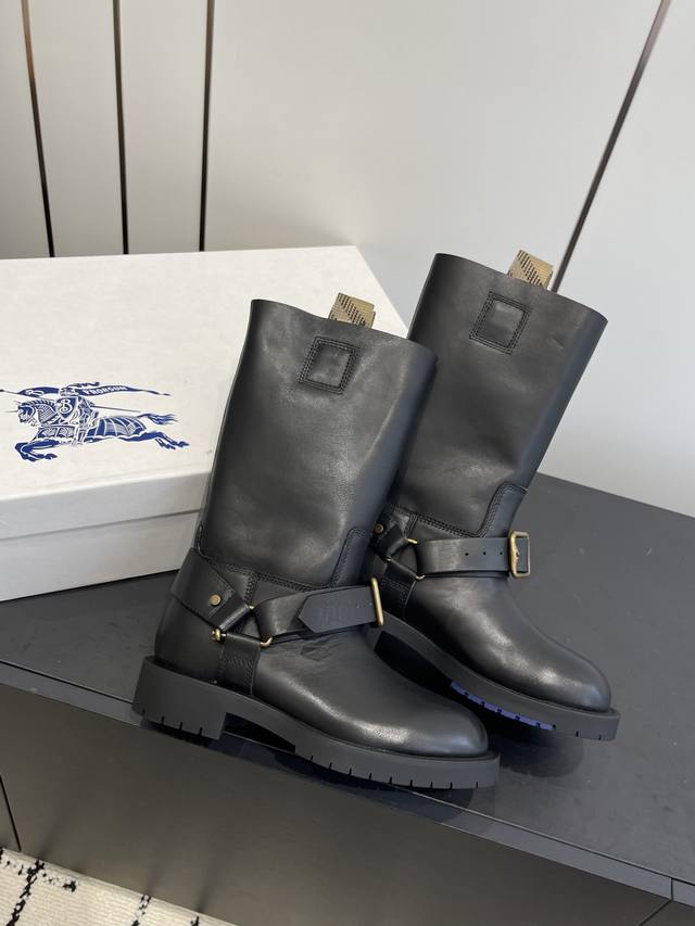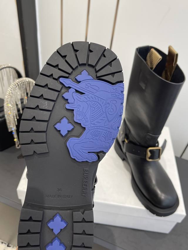 Burberry, designed by Daniel Lee, 25Ss Fall/Winter new design mid-calf boots/high boots DDD Yi Mengling's style, worn by many internet celebrities and stars, this fall/winter limited edition, very hard to buy in stores. Looks stiff but is actually very soft and comfortable! Super comfortable! Wide boot shaft, suitable for both thick and thin legs, providing a relaxed feel and making legs look straight!! Full of punk style! Zp molded blue knight sole DDD Upper: Custom imported high-gloss suede cowhide DDD Lining: Custom sheepskin DDD Sole: Original molded outsole DDD Heel height: 3.5Cm DDD Sizes: 35-39, 40 custom-made DDD