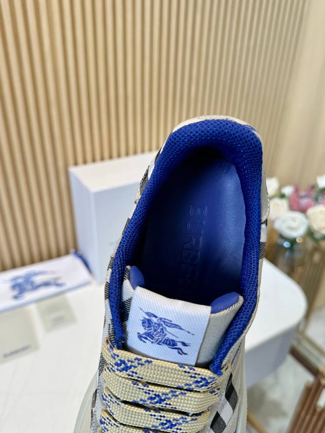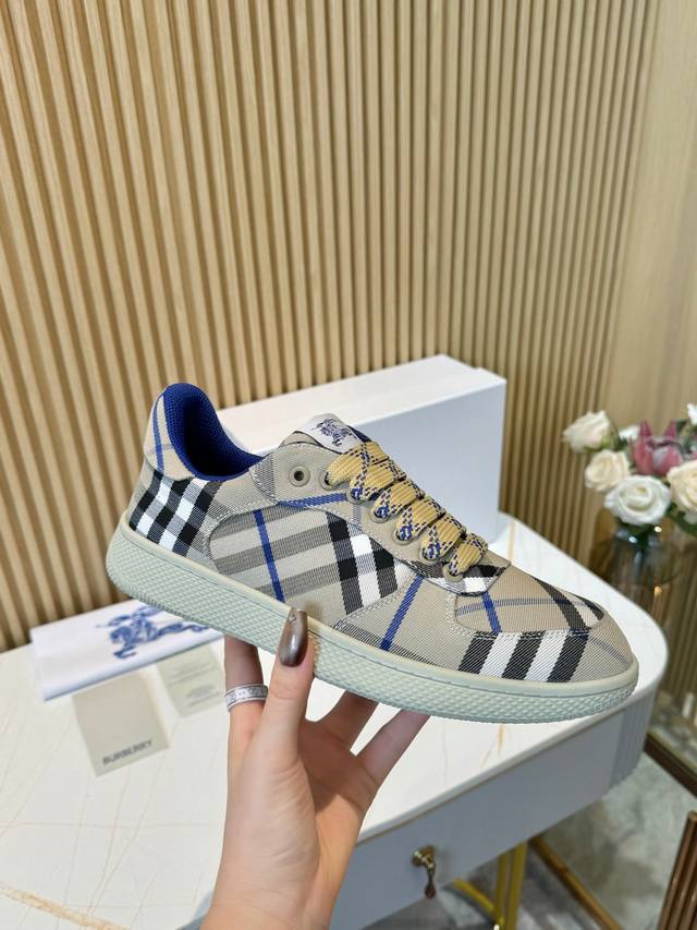 Burberry's hottest new style has arrived. After three years, the classic check returns for a versatile look, embellished with a finely woven Burberry check pattern. It features a mesh lining and check laces, and a rubber sole embellished with the iconic Burberry monogram. From the Burberry Classics collection, this wardrobe essential is a statement piece, embodying the brand's distinct style.