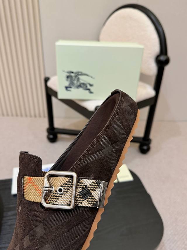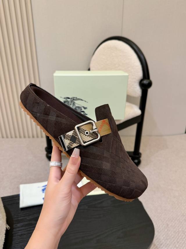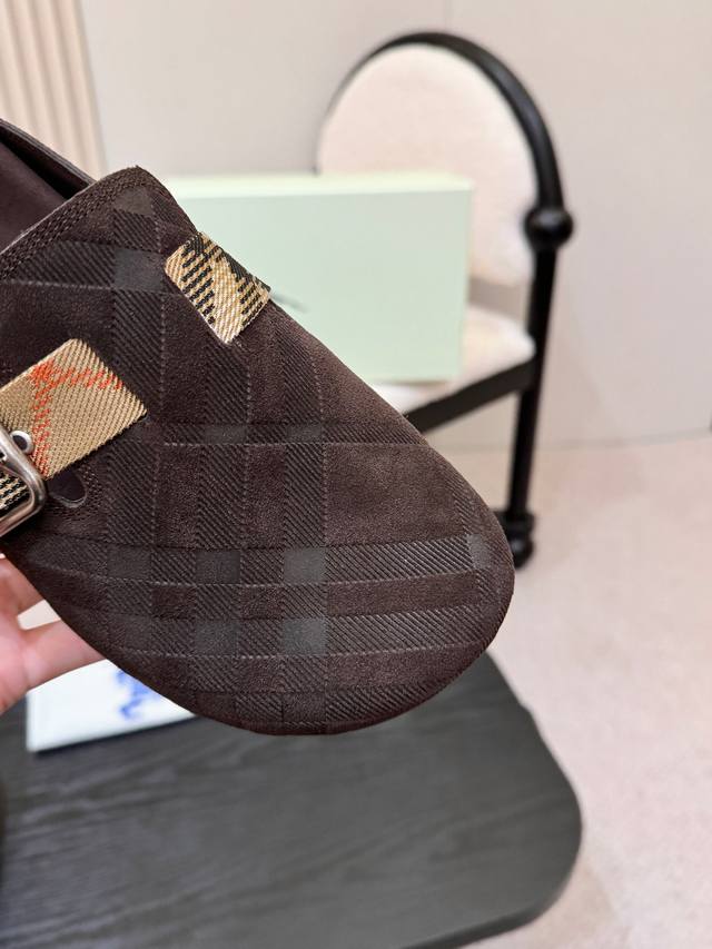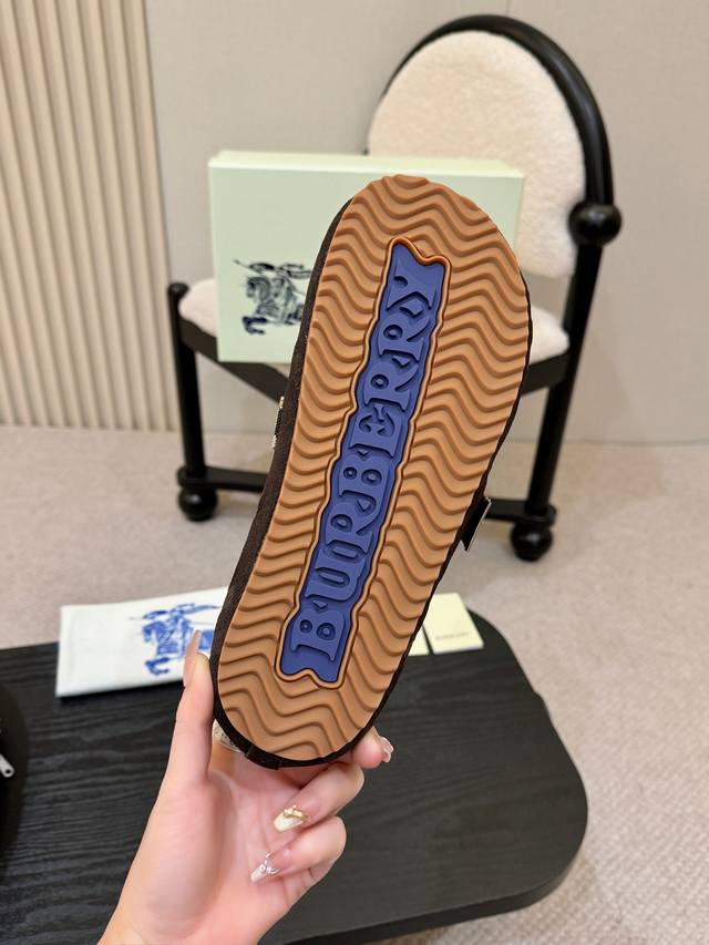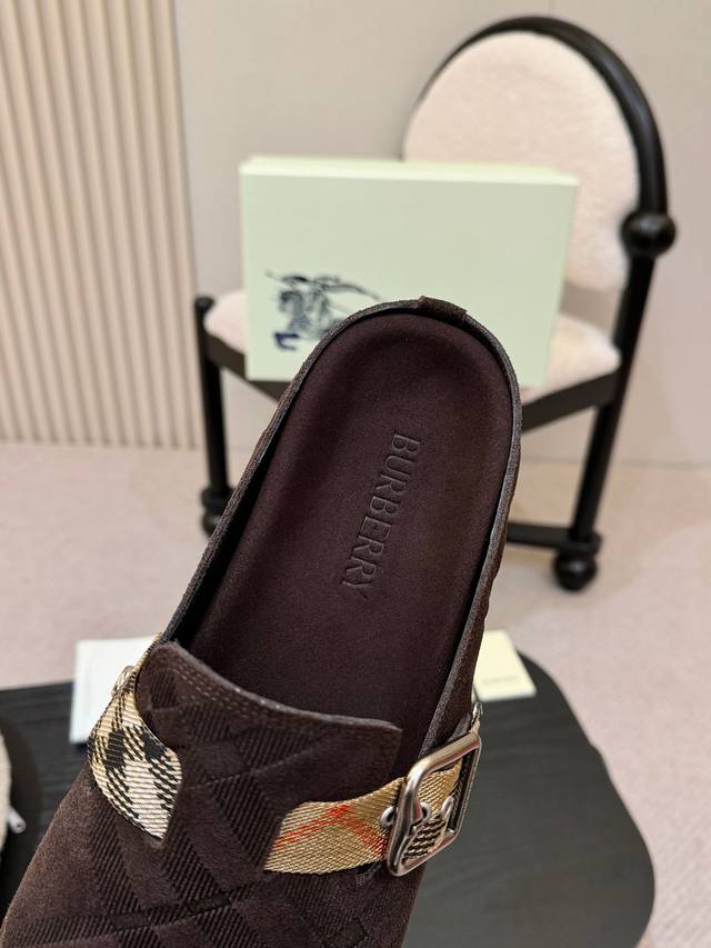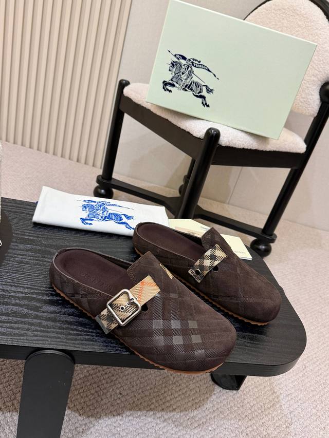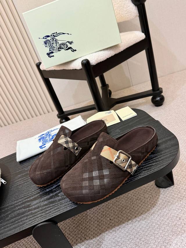 Embossed Men's and Women's Versions, 330 RMB! Burberry's 2025 hottest Birkenstock slippers are here! Crafted from soft suede leather and made in Italian workshops. Features an embossed check pattern and an embossed sole adorned with the iconic brand logo. Includes an adjustable B-ring strap decorated with the signature sand-colored Burberry check pattern. Material: Grain Leather; Lining: Silk Denim; Outsole: TPU; Colors: Black, Brown, Pink, Apricot, Coffee (5 colors available); Sizes: Men's and Women's 35-45; 35 and 45 custom sizes available.