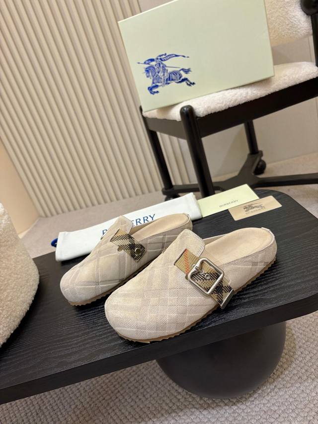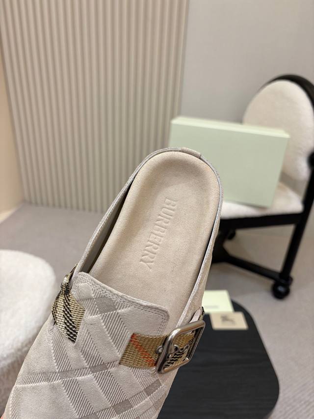 Embossed Men's & Women's 330 RMB! Burberry 2025 DDD Hot Selling Birkenstock Slippers are here! Crafted from soft suede leather and made in Italian workshops. Features an embossed check pattern and an embossed sole adorned with the iconic brand logo. Includes an adjustable B-ring strap decorated with the signature sand-colored Burberry check pattern. DDD Material: Suede DDD Lining: Silk Denim DDD Outsole: TPU DDD Colors: Black, Brown, Pink, Apricot (4 colors available) DDD Sizes: Men's & Women's 35-45, 35 & 45 custom sizes DDD