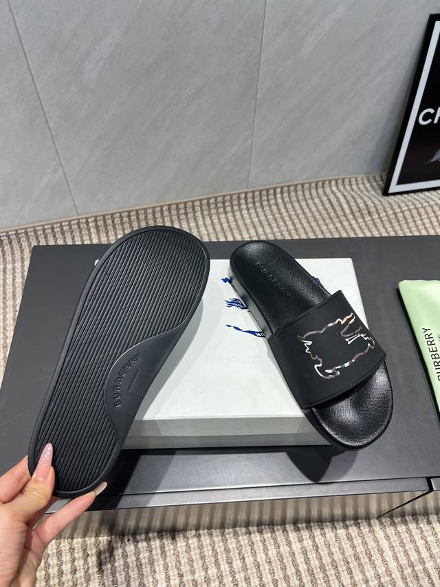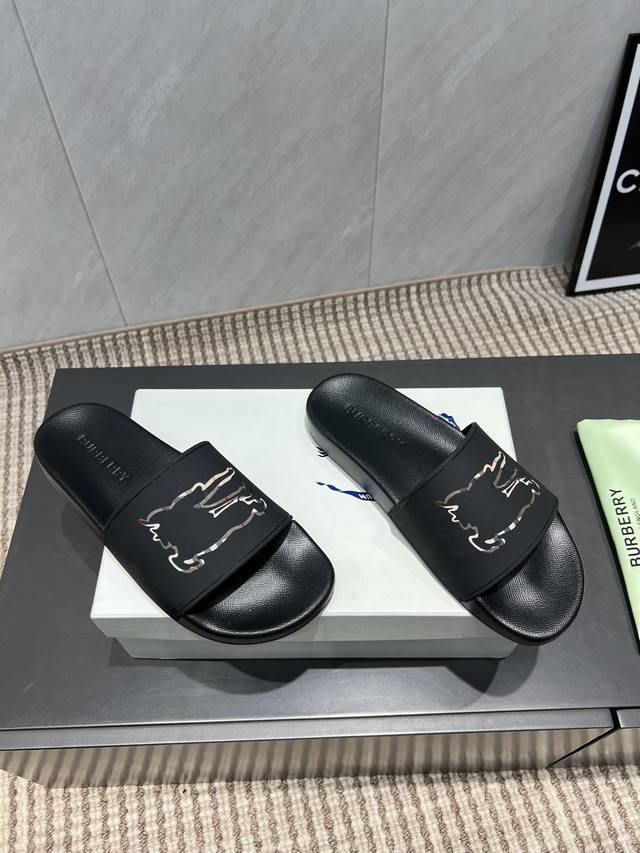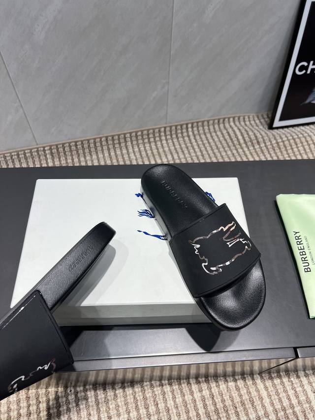 Original purchase, mold opening, and production, Burberry couple's rubber-faced sandals, combining a casual attitude with iconic hollow elements, made from polymer materials and featuring a unique color scheme, add a luxurious style to the casual silhouette with unexpected Burberry elements. A completely unexpected fashion-forward item for summer streetwear