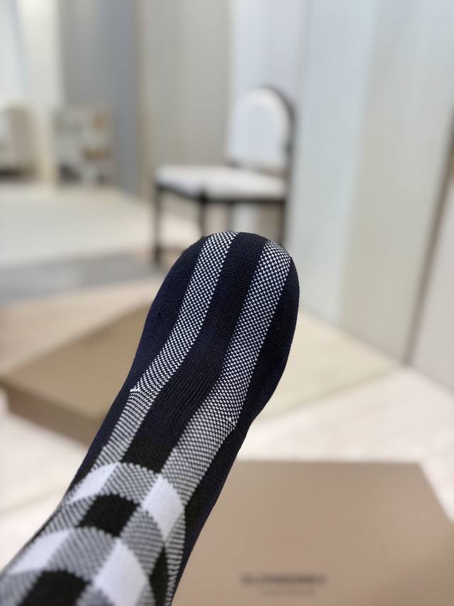 Exclusive Launch of Round Toe Chunky Heel Check Stretch Knit Sock Boots
