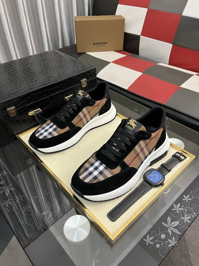 Factory Price (pp): Burberry Men's Fashionable Casual Shoes. High-quality upper made of imported Italian cowhide with printed fabric, breathable lining + pigskin insole, exquisite workmanship, high-end and stylish design. Durable rubber outsole. Sizes: 38-443. Colors available.