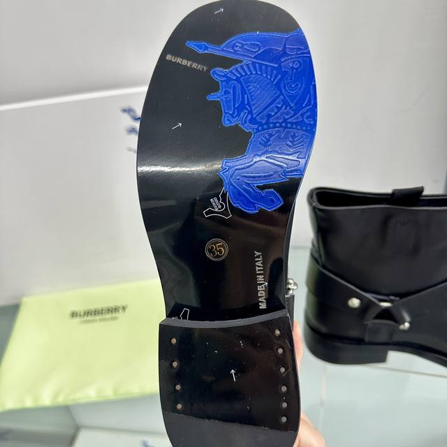 features Burberry's distinctive knight boot style. The upper is made of premium cowhide leather and lined with sheepskin. Note: Shaft height 38cm, circumference 35cm, heel height 2.5cm. Shaft height 15cm, circumference 28cm. Long boots lined with sheepskin. Short boots lined with sheepskin. Sizes: 35-43. Sizes 35, 40, 41, 42, and 43 are custom-made and cannot be returned or exchanged.