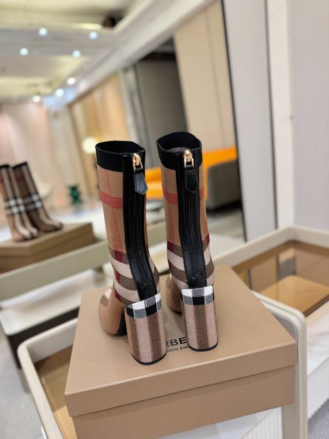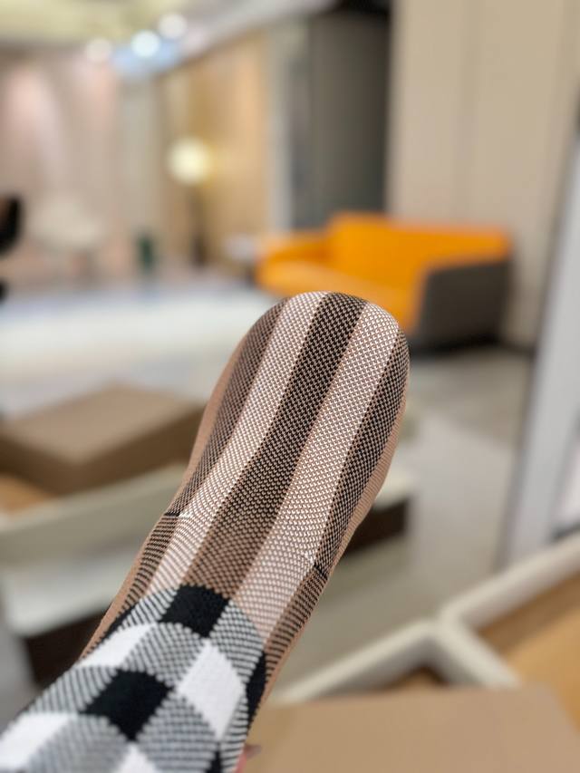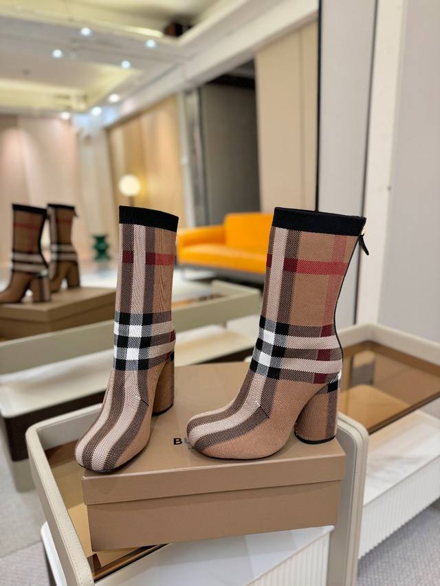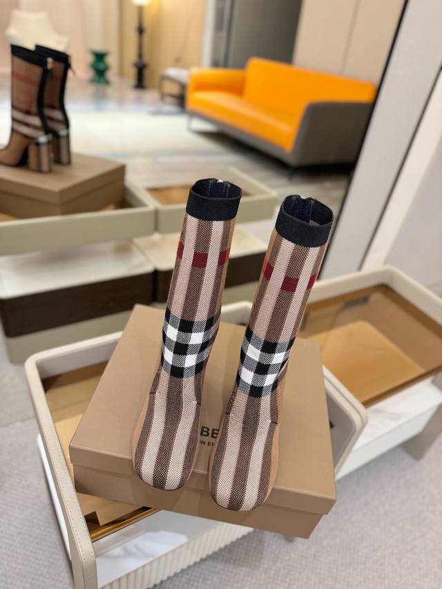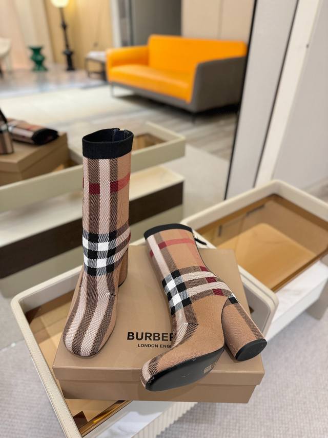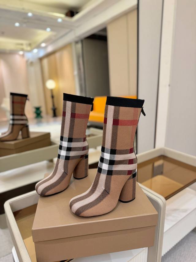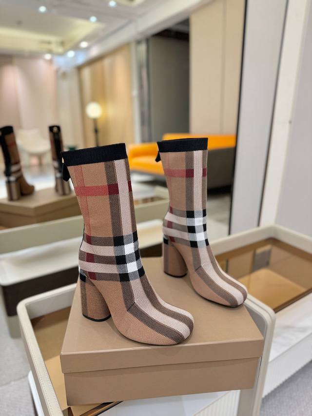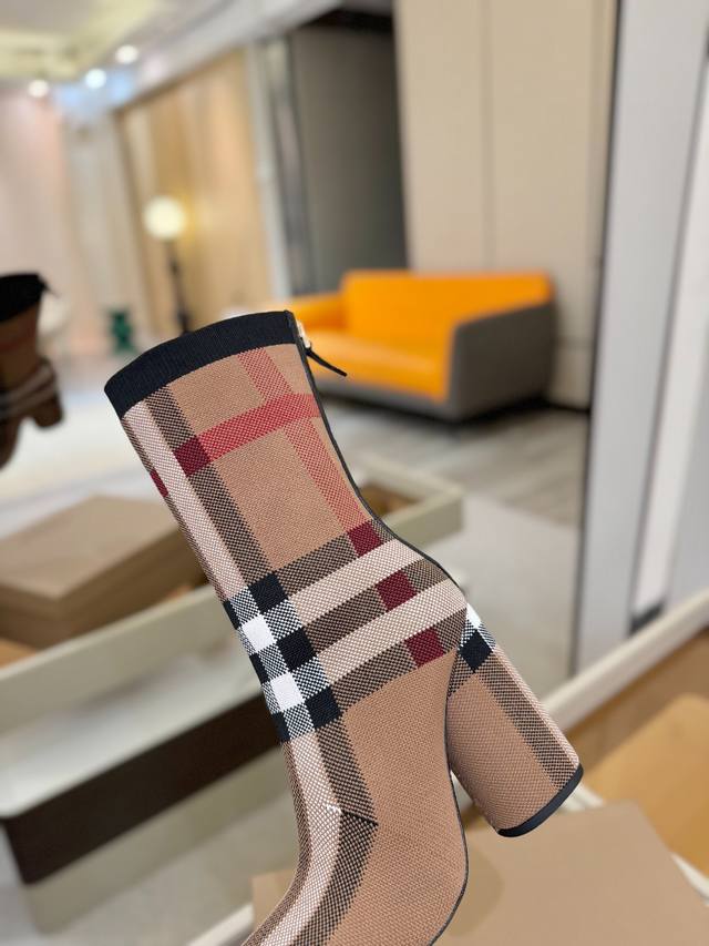 Price: DDD Exclusive Launch of Round Toe Chunky Heel Check Stretch Knit Sock Boots DDD Burberry, a British luxury brand, classic beige, 1:1 replica of the original, fitted stretch knit knee-high boots with a round toe and chunky heel, decorated with the brand's signature check pattern. DDD Upper: 92% polyester, 8% elastane, sheepskin lining, Italian genuine leather outsole!!! DDD Material: Original custom-made yarn DDD Outsole: Original genuine leather outsole DDD Heel height: . DDD Size: - ..Custom made DDD Boot height: DDD Boot opening circumference: DDD