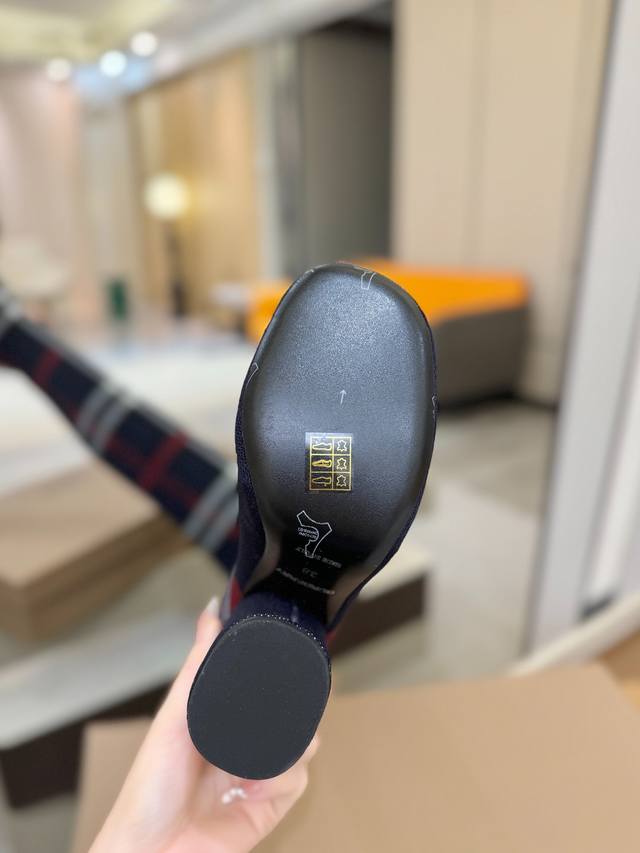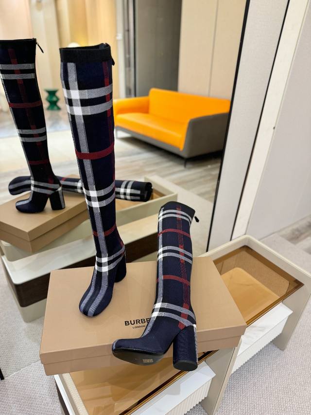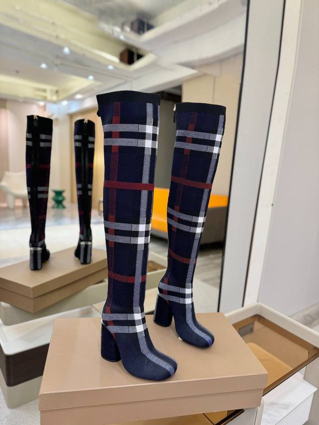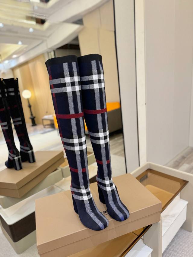 Price: DDD Exclusive Launch of Round Toe Chunky Heel Check Stretch Knit Sock Boots DDD Burberry, a British luxury brand, classic beige, 1:1 replica of the original, fitted stretch knit knee-high boots with a round toe and chunky heel, decorated with the brand's signature check pattern. DDD Upper: 92% polyester, 8% elastane, sheepskin lining, Italian genuine leather outsole!!! DDD Material: Original custom-made yarn DDD Outsole: Original genuine leather outsole DDD Heel height: . DDD Size: - ..Custom made DDD Boot height: DDD Boot opening circumference: DDD