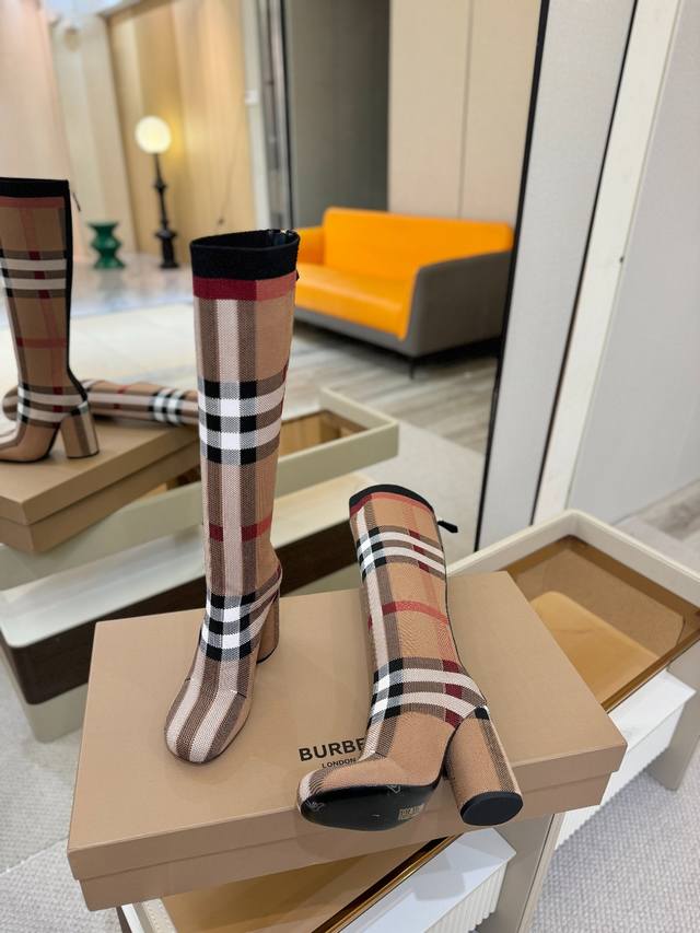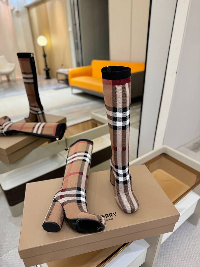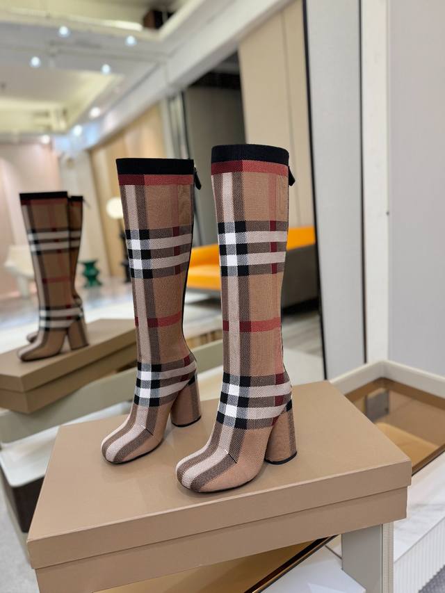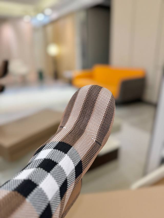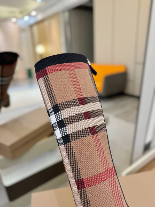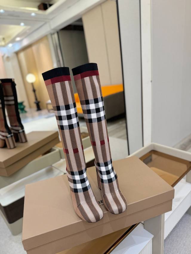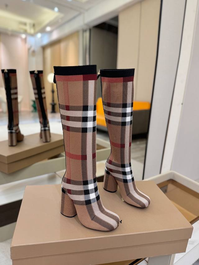 Price: DDD Exclusive Launch of Round-Toe Chunky Heel Checkered Stretch Knit Sock Boots DDD Burberry, a British luxury brand, classic beige, 1:1 replica of the original, fitted stretch knit knee-high boots with a round toe and chunky heel, decorated with the brand's signature checkered pattern. DDD Upper: 92% polyester, 8% elastane, sheepskin lining, Italian genuine leather outsole!!! DDD Material: Original custom-made yarn DDD Outsole: Original genuine leather outsole DDD Heel Height: . DDD Size: - ..Custom Made DDD Boot Height: DDD Boot Opening Circumference: DDD