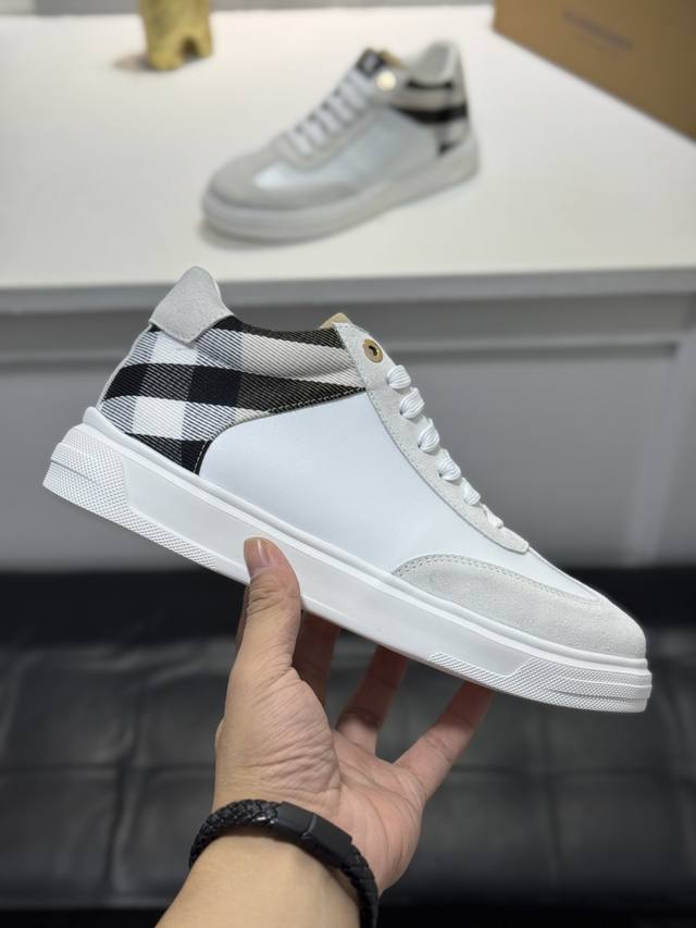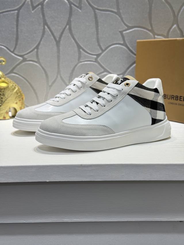 Burberry* 2025 New Burberry Men's Classic Low-Top Sneakers, a refreshed interpretation of vintage check cotton paired with cowhide leather, adorned with a revitalized brand logo. Lambskin lining, durable and slip-resistant rubber outsole! Actual Price Size: 38-44, 45 (Custom sizes available)