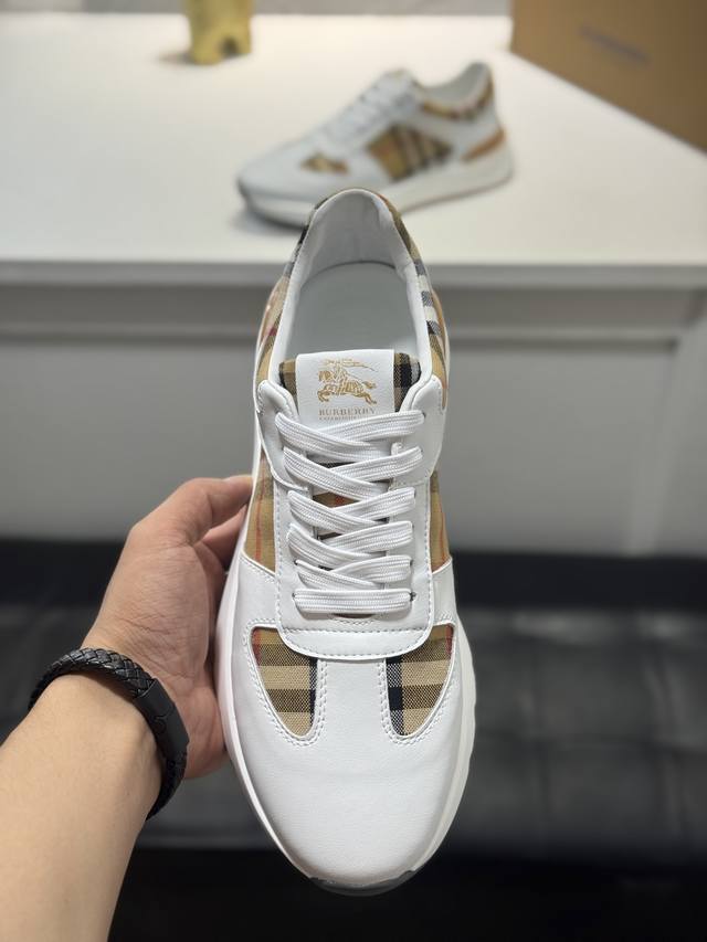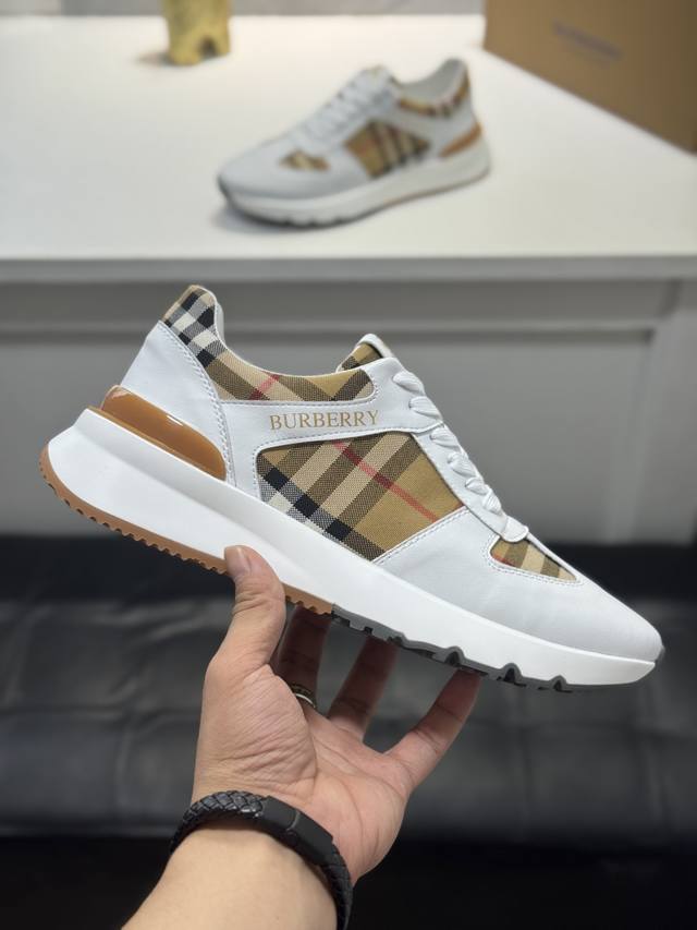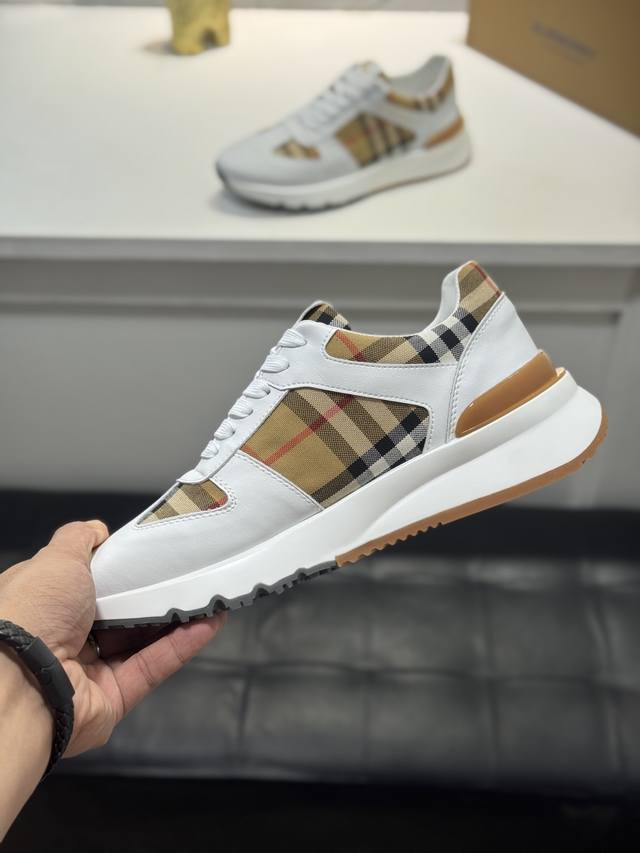 Burberry* New men's classic low-top sneakers, a fresh take on vintage check cotton paired with cowhide leather, adorned with a revitalized brand logo. Features a lambskin lining and a durable, non-slip rubber outsole! Available in multiple colors.