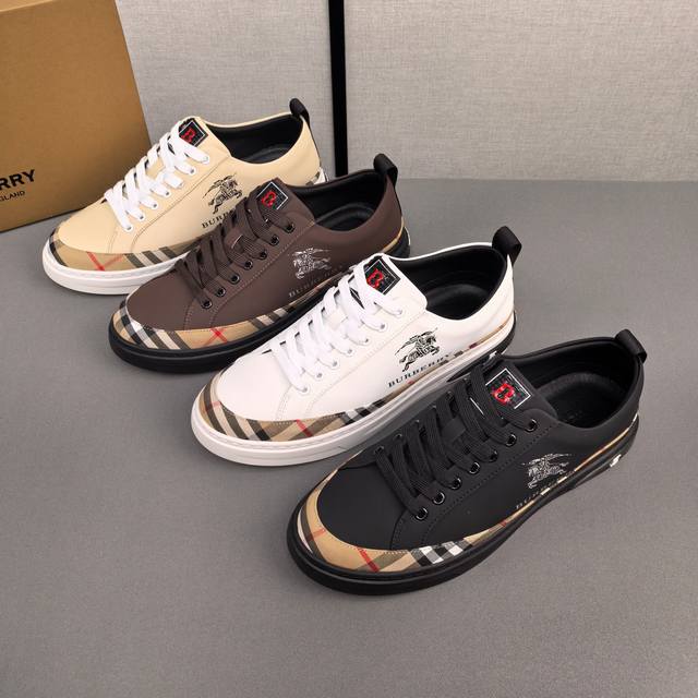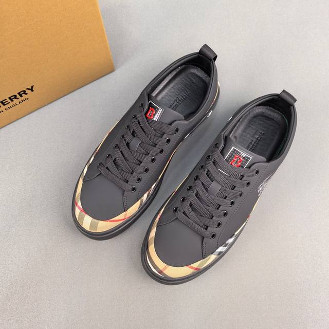 burberry. Stylish sports casual shoes with a top-grain cowhide upper and plaid, a top-grain pigskin lining, and a rubber outsole. Men's sizes 38-44.
