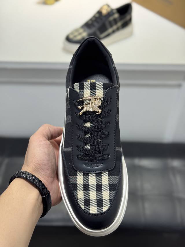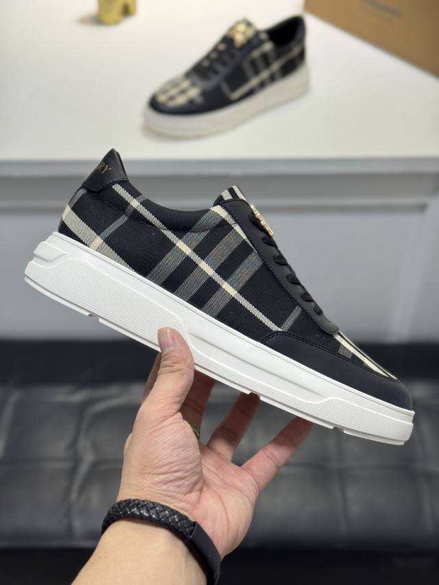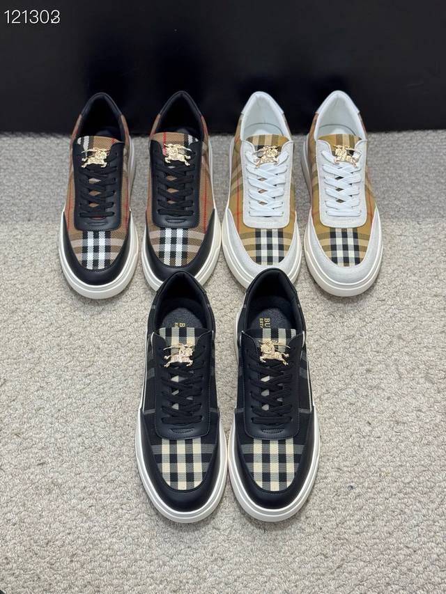 Factory direct price for men's shoes and athletic wear, original Burberry new style men's classic low-top sneakers, a refreshed interpretation of vintage check cotton paired with cowhide material, decorated with a new brand logo. Genuine leather lining, wear-resistant and non-slip rubber outsole! Multiple colors available, a must-have for men. Size: 38-44 45 (customizable).