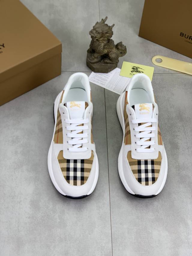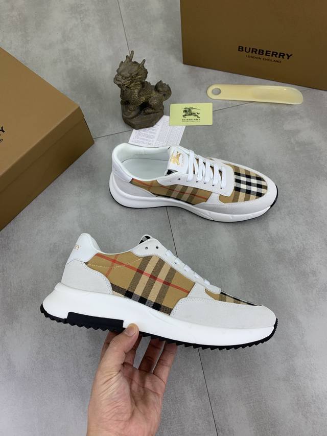 Factory direct price. New Burberry men's casual low-top sneakers, perfect workmanship, slip-on style for premium quality. Upper: stylish and exquisite Burberry floral fabric with imported sheepskin lining for soft comfort. Lightweight and durable rubber outsole. Men's sizes: 38-44; 3 colors available.