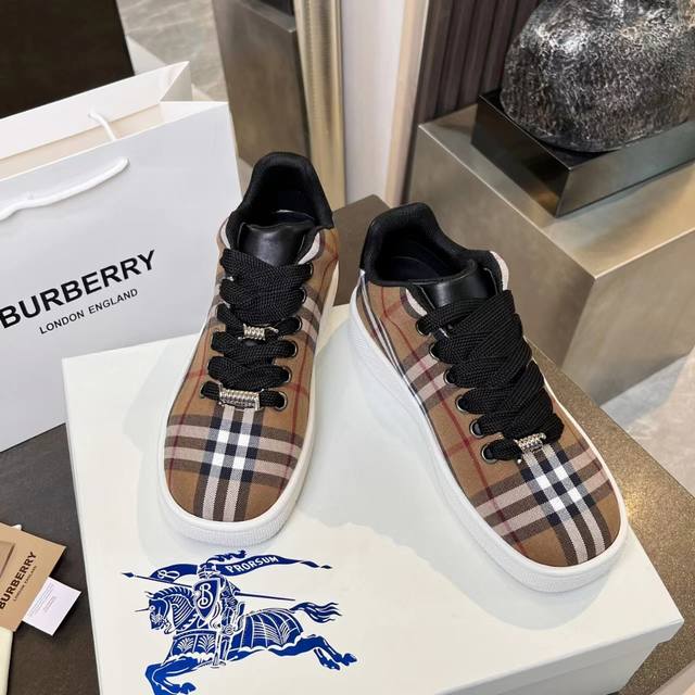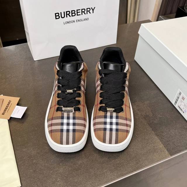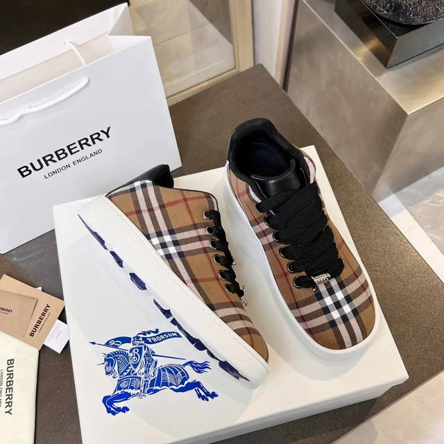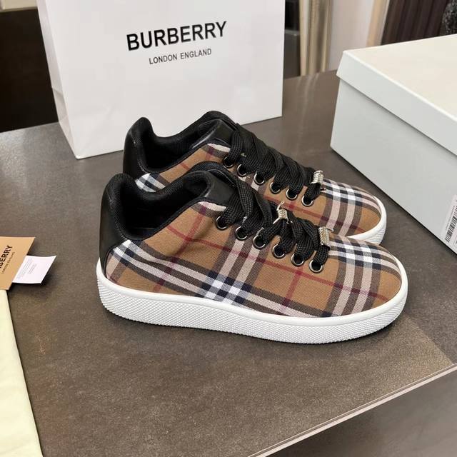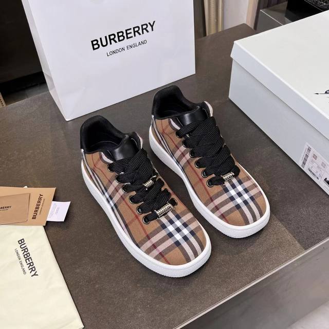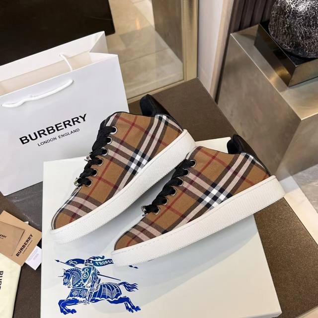 Factory direct price women's sports shoes, original Burberry, made in Italy, elastic nylon sneakers, decorated with a check pattern. Mesh lining, barbed laces, rubber sole with Burberry logo engraving. Lace-up closure, round toe, barbed wire hardware, sole with Burberry logo. Sizes: Women's 35-40, Men's 39-46. (DDD)