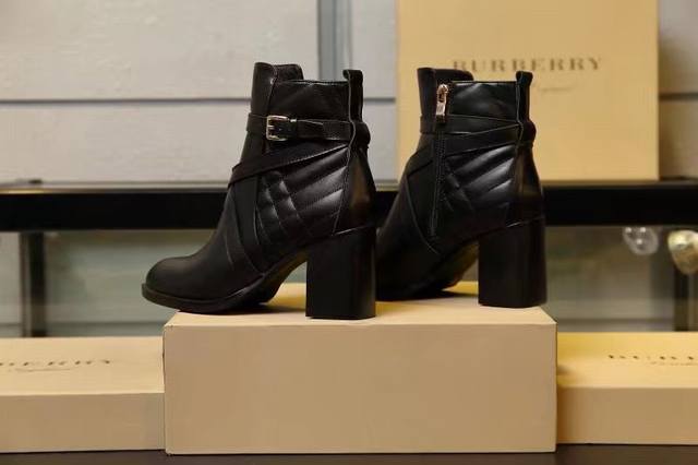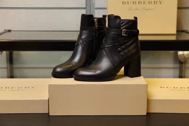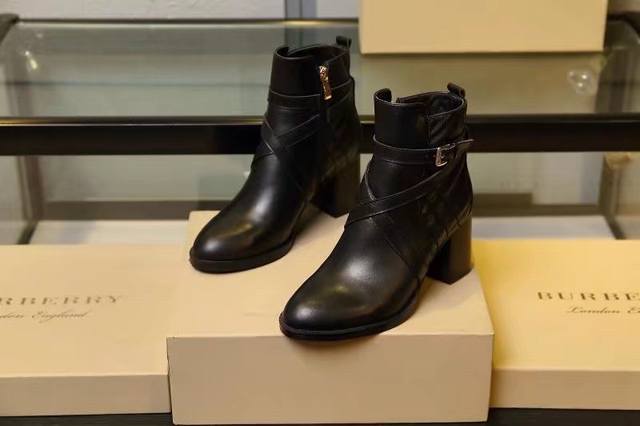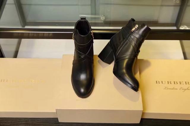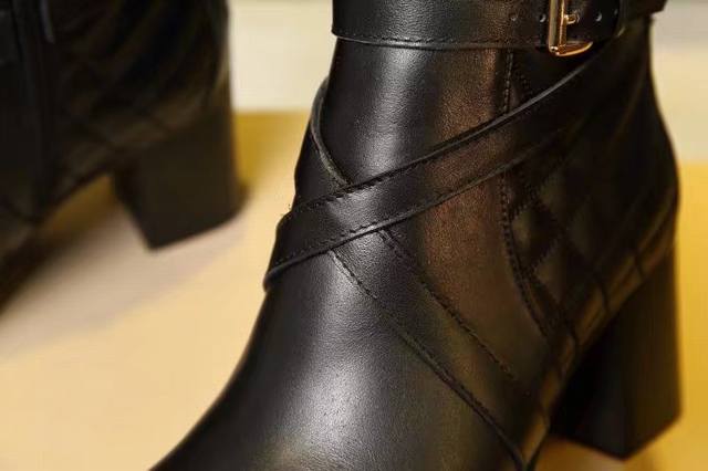 Factory direct women's shoes, sportswear, original Burberry equestrian-inspired ankle boots, made of selected smooth leather with the brand's House check pattern. Upper: cowhide; Lining: 100% sheepskin; Sole: rubber; Slip-on design; adjustable buckle; Almond-shaped toe; Heel height: 7cm; Boot height: 10.5cm; Boot opening circumference: 22.5cm; Sizes 35-42.