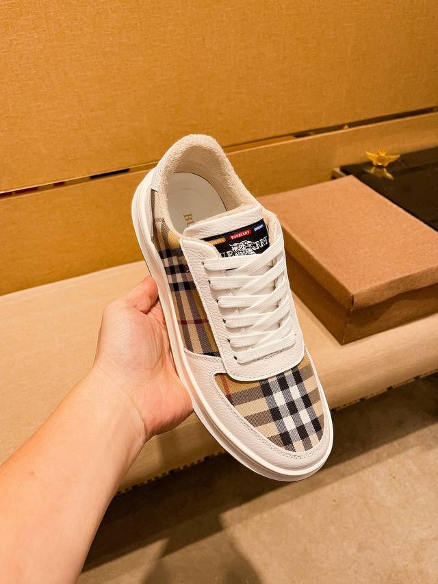 Factory p-batch Burberry men's shoes, a high-end brand, the latest masterpiece from the official website, 1:1 ratio: Made with imported Italian top-grain cowhide uppers and a comfortable, breathable lining, the original non-slip, wear-resistant outsole makes walking more convenient and comfortable! Exclusive new models, stunning creations, a 1:1 replica of the original quality! Create a stylish and personalized look that sets you apart! A must-have for trendy men, sizes 38-44. Colors: 2 colors available.