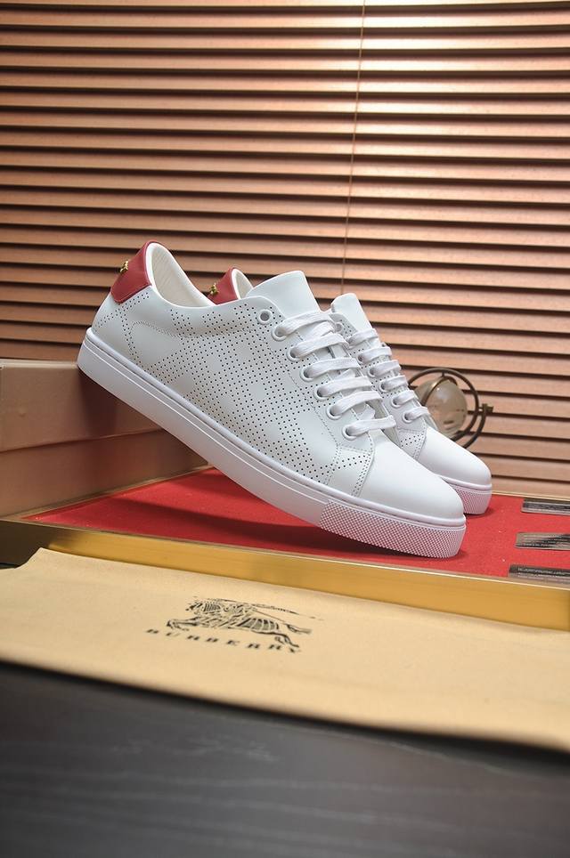 Factory Price Burberry Classic Low-Top Sneakers with Leather Lining | Imported Leather with Classic Check Fabric | Leather Lining | Original Outsole | Exquisite Workmanship and Comfortable Wear Size: 38-44 45 Custom Made