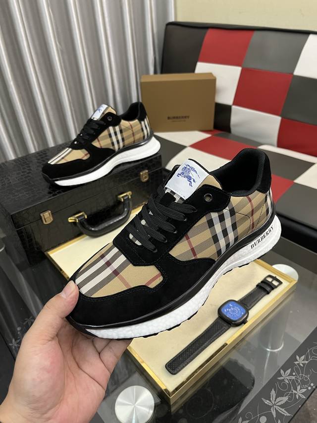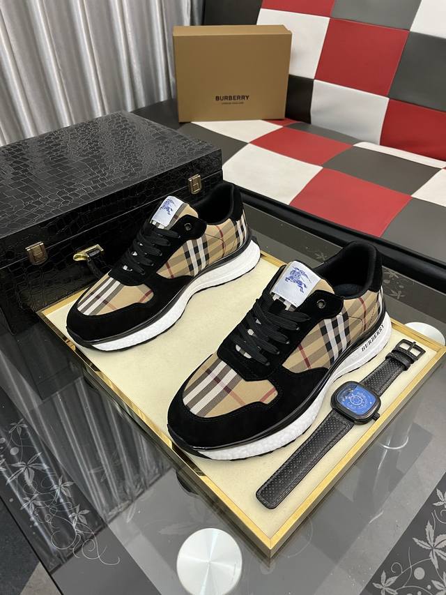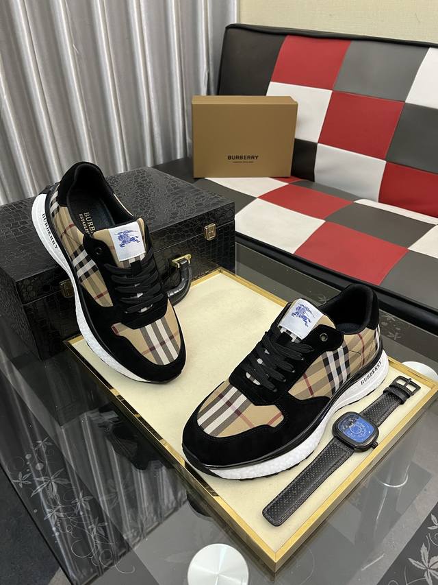 Factory Price (pp): Burberry Men's Fashionable Casual Shoes. High-quality upper made of imported Italian cowhide with printed fabric, breathable lining + sheepskin insole, exquisite workmanship, high-end and stylish design. Durable rubber outsole. Sizes: 38-442 colors available.