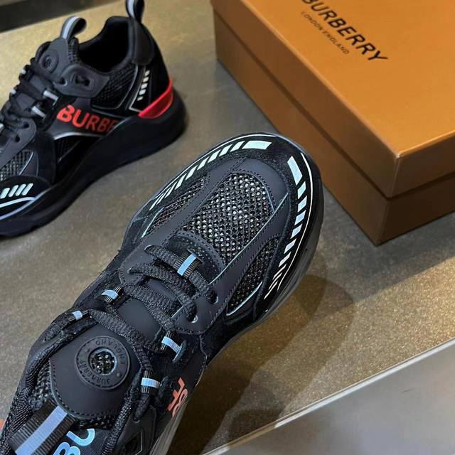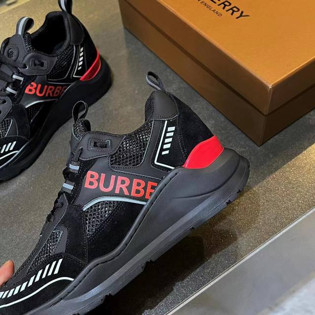 Latest high-end version from official stores, 1:1 replica of Burberry Fall/Winter 2023 platform sneakers. Made with retro plaid, suede, and leather, featuring a prominent curved sole. Upper: 48% cotton, 52% calfskin; Lining: 60% polyester, 40% sheepskin; Sole: 100% TPU. Features laces and Velcro buckle, embossed Burberry logo on the shoulder strap, and printed Burberry logo on the heel. Women's sizes 35-40, men's sizes 39-45. 1:1 replica packaging.