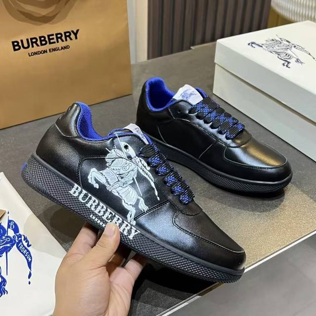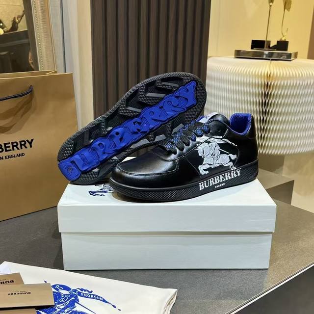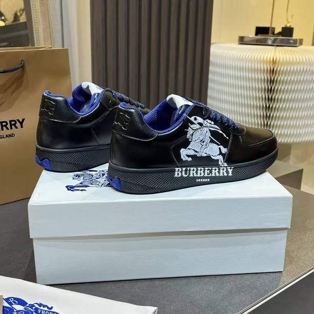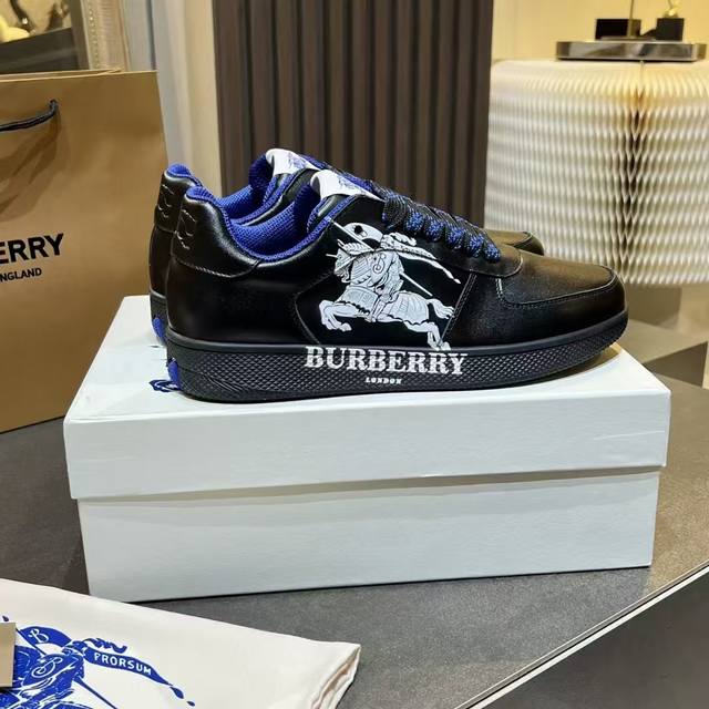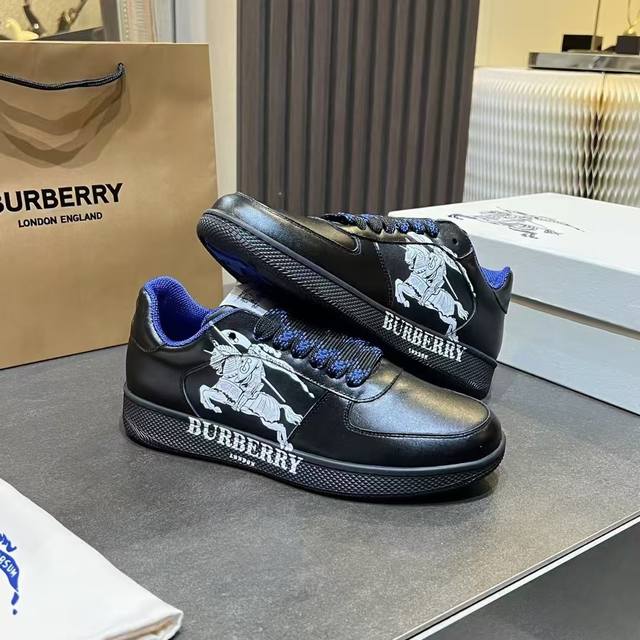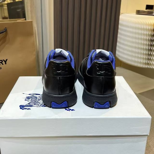 New upgraded version of the Burberry Italian-made sneaker, decorated with classic 3D styling patterns and smooth leather elements. Upper: 100% silk calfskin, lining: 100% counter-exclusive dark blue imported mesh, original molded sole: 100% polyurethane, lace-up closure, and Burberry three-dimensional lettering logo on the heel. Sizes for women: 35-40, men: 39-45