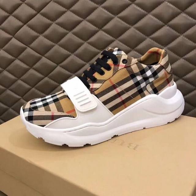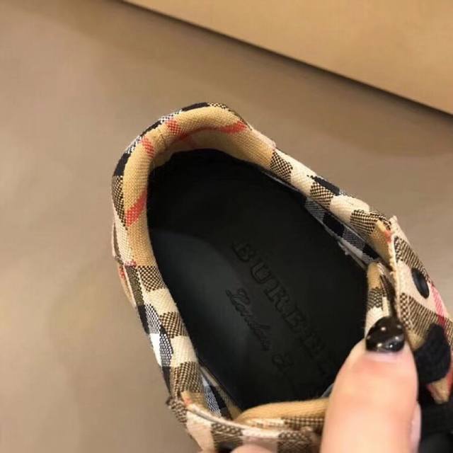 Real Price: 1:1 replica of the original canvas, couple's style. Upper: 54% polyester, 42% calfskin suede, 4% calfskin. Lining: 100% sheepskin; 63% sheepskin, 30% polyester, 5% polyamide, 2% polyurethane. Sole: 100% rubber. Lace-up with Velcro. Embossed Burberry logo on the front and heel. Made in Italy. Sizes: Women's 35-40, Men's 39-44. DDD