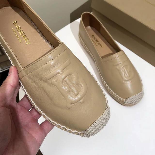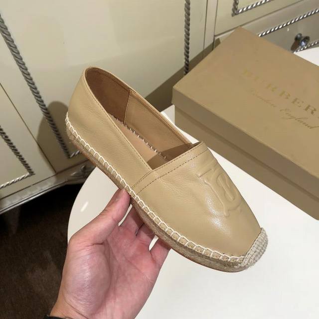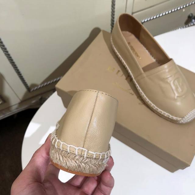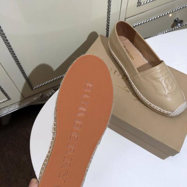 Real Price: Burberry new arrival from the boutique, practical rubber non-slip sole, with unique hemp weave detailing, upper: 100% leather, lining: 100% sheepskin, sole: 100% rubber. Sizes 35-40, leather upper DDD